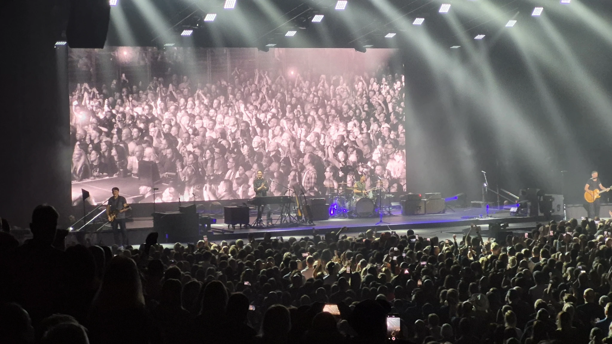 Siis läks Bryan pealavale ja bänd tuli ka välja ning möll läks lahti. Imetlusväärse energiaga bänd. Rahvas läks ka kohe põlema ja põrandal hakati möllama. Ja siis süttisid ka lambid! Vau! Neid lampe imetlesin ma kogu kontserdi aja – see oli nii ilus tuledemäng, mis pea iga looga kaasas käis – erinevad värvid ja tuled süttisid ning kustusid rütmiga kooskõlas. Ja kuna inimesi oli palju, sest ka päris lae all olid isegi Harry Potteri kohad rahvast täis, siis see tähendas seinte kaupa tulesid ja see oli niiiiii lahe. Püüdsin seda tuledemängu ka pildile ja filmile saada. Eks ma midagi saingi, aga seda kohapealset efekti siiski üks ühele tabada ei õnnestunud. Need lambid tegutsesid kogu kontserdi aja ja pärast uksest välja minnes sai need ühte kasti poetada järgmiste kontserdite jaoks. Need lambid olid minu meelest nii geniaalne leiutis. Täitsa võimalik, et neid kasutatakse kontserditel tihti, aga no ma pole käinud ega näinud ja seega jätsid need mulle siiski kustumatu mulje.