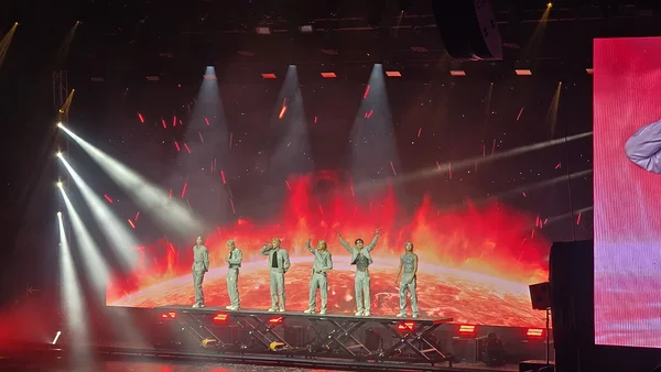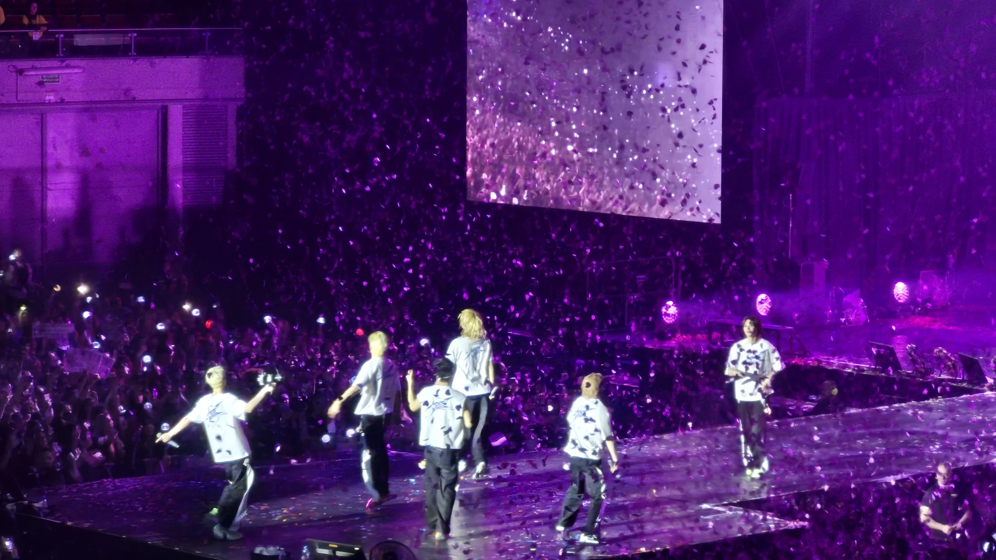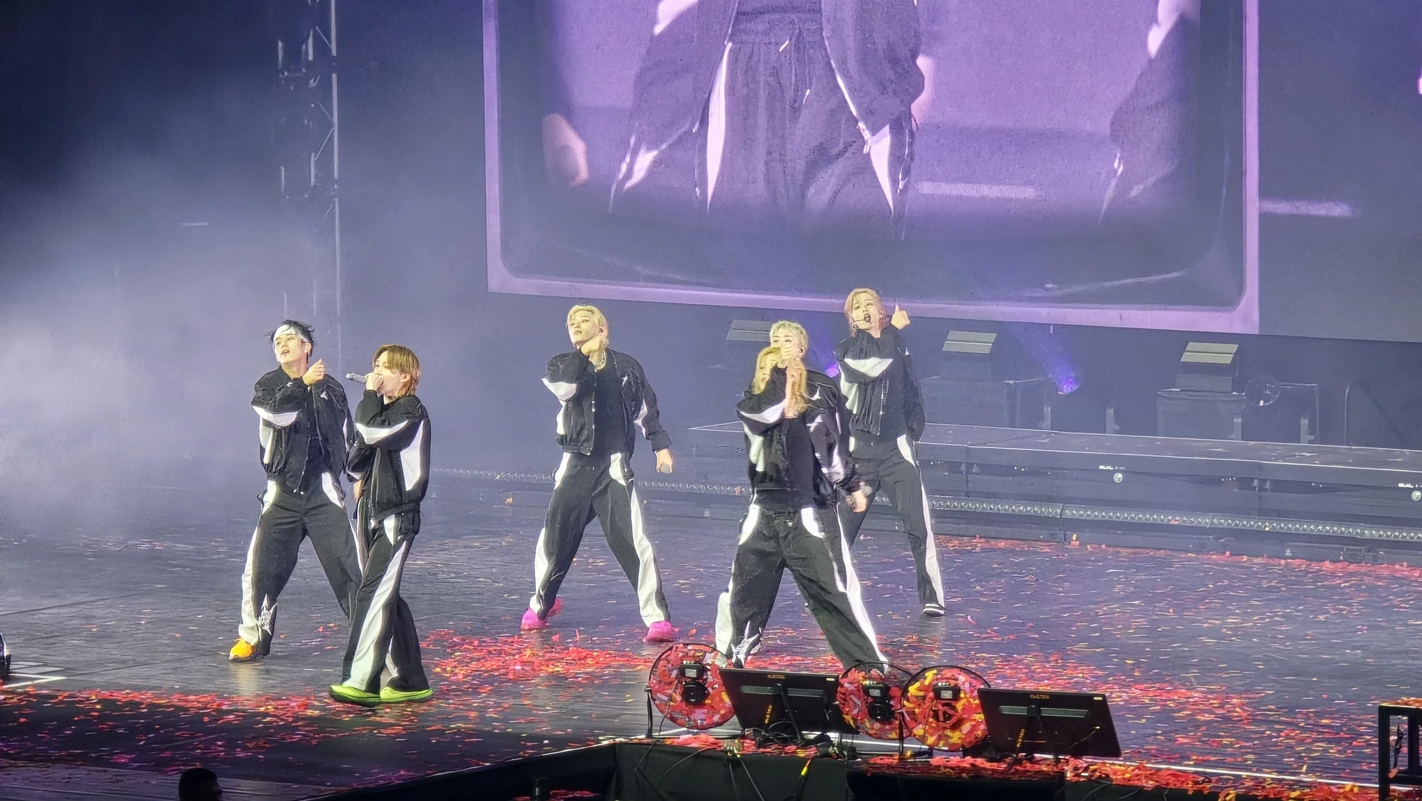 Aga nad tulid lavale ja nii laval kui publiku seas läks möll kohe esimeste sekunditega lahti. Vahepeal muusikat ei kuulnudki, sest selline kiljumine käis. Aga ma ei olnud mitte ainult kiljumisest hämmastunud, vaid niisama ka. Täiesti uskumatu, kui kiirelt ja kui sünkroniseeritult need poisid tantsisid ja liikusid ning kui süsteemselt laulsid. Süsteemselt selles mõttes, et mina-sina-tema-koos-sina-tema-koos jne jne. Kõik oli tohutult kiire ja hästi toimiv. Lisaks sellele, et publik oli vaatamisväärsus ja poisid olid laval täiesti suud lahti võtvad, olid kaasatud ka visuaalsed efektid – tulesambad, ekraanid ja iga natukese aja tagant õhku tulistatud konfetid. Seda lendlevat kraami puhusid lavatöölised igal võimalusel lavalt lehepuhurite laadsete aparaatidega, mis võibolla olidki lehepuhurid, ära. Nad püüdsid ise samal ajal märkamatuks jääda ja kasutasid neid hetki, kui ei lauldud ega tantsitud, vaid poisid rääkisid. Nad küll ei saanud lava kordagi täiesti puhtaks, aga õnneks keegi ka ei libastunud konfetihunnikute otsas äkilisi tantsuliigutusi tehes.