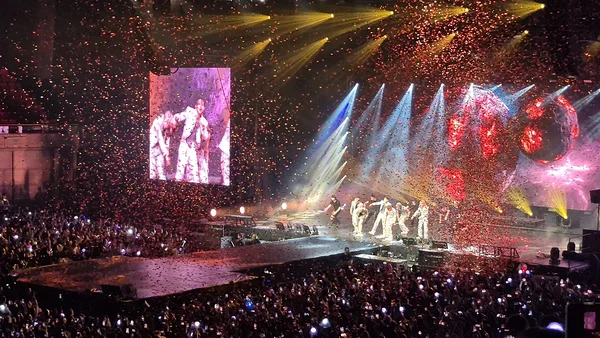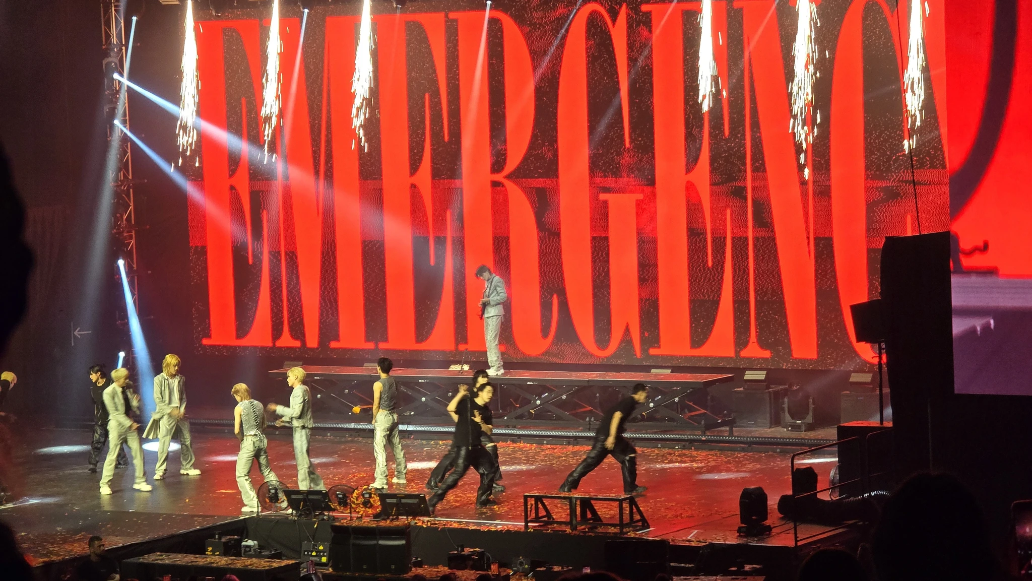 Lisaks ametlikule bändi koosseisule olid neil veel lisatantsupoisid, kes aegajalt lavale hüppasid. Ma tegelikult ei jõudnud kordagi üle lugeda kui palju neid oli. Publiku hulgas oli võrreldes Bryan Adamsi kontserdiga teistmoodi see, et kui Bryani juures hüppasid istujad püsti kontserdi lõpu poole, siis k-popil hüpati püsti kohe alguses ja me enamvähem seisime ise ka kogu aja püsti, sest meie ees istujad seisid ja selleks, et ise ka midagi näha, pidime ka meie seisma.