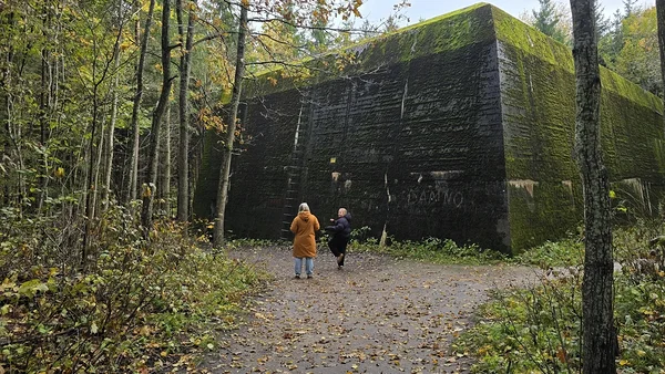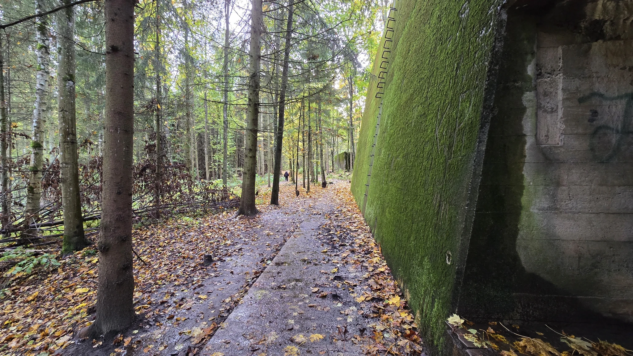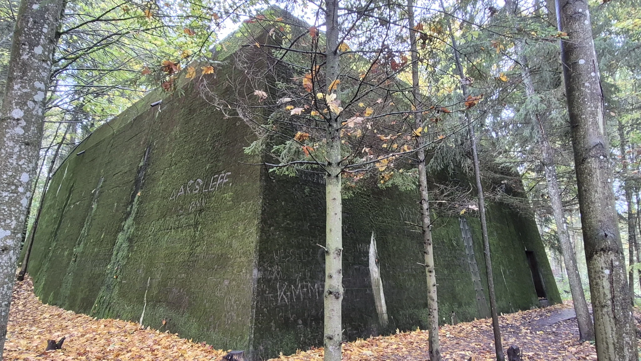 Aga peale väikest jalutuskäiku olimegi punkrite juures. Need ei üllatanud meid enam otseselt millegagi, aga tähelepanuväärne oli siiski see, et need olid terved. Ühele sai ka redelit mööda otsa ronida, aga meil seda huvi polnud. Ühele sai mööda pimedaid käike sisse vaadata. Liisbet küll kartis hirmsasti, et vuntsidega mees või mõni tema kuju võib seal sees olla, aga no me hoidsime käest kinni ja näitasime taskulambiga valgust ning läksime vaatasime ikkagi. Sees olid lihtsalt tühjad ruumid ja käigud, mis olid niisked ja millede laest tilkus vett. Natuke kõhe oli, aga põnev oli ka. Kõige enam imestasin ma selle üle, mida ei olnud, prügi. Poolas, ja ei sa öelda, et Eestis seda pole, on kõik veidi nurgatagusemad kohad ikka prügi täis, aga seal ei olnud midagi. See muidugi näitas mitte seda, et külastajad sinna prügi ei viska, vaid pigem seda, et ala koristatakse ja ilmselt tihti.