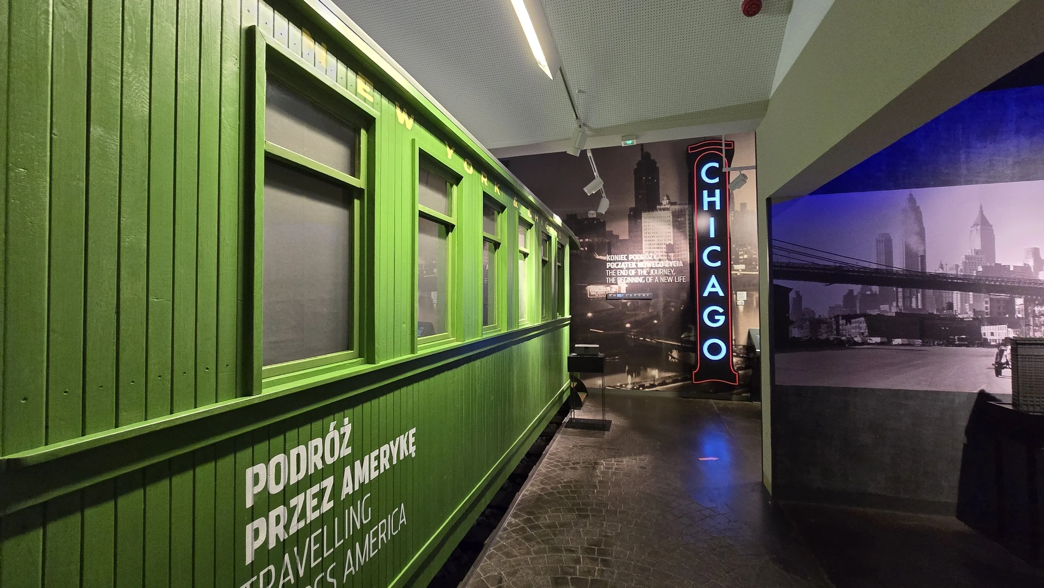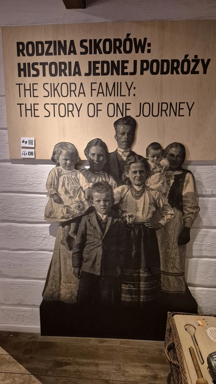 Üks huvitav lahendus näitusel oli selline, et läbi ruumide kulges lisaks muule ka ühe perekonna lugu. Seda jutustas perekonna vanim tütar, kes selle kirja oli pannud. Lugu kulges nii kirjalikult, kui seda sai ka audiogiidiga kuulata. Kirjalikul osal oli iga kord mõni foto ka juures. Perekond Sikora ei saanud enam eluga Poolas hästi hakkama ja vanemad tahtsid lastele paremat tulevikku ning nad hakkasid ette valmistama perekonna emigreerumist USA-sse. Räägitigi, kuidas nad raha kõrvale panid ja muid ettevalmistusi tegid, et siis päriselt teele asuda. Nad läksid teele Kagu-Poolast. Iga uus lugu oli koos märkega kaardil, et kui mitu päeva nad teel on olnud ja mitu kilomeetrit alguspunktist edasi liikunud. Saksamaalt üle Atlandi sõit võttis aega 10 päeva. See oli minu jaoks huvitav kuulamine ja mulle meeldis eriti see isiklik lugu. Kuulasin järjest kogu selle perekonna loo ära ja hoidsin pöialt, et keegi neist tee peal otsa ei saaks nt mõni väiksem laps. Kõik läks õnnelikult ja nad alustasid uut elu Chicagos. Kõige viimase loo lõpus oli kirjas, et lugu oli fiktiivne ja pandud kokku paljude Ameerikasse emigreerunud Poola perede lugudest. Oi, kui pettunud ma olin. Minu jaoks olid need päris inimesed olnud ja tegelikult neid polnudki olemas. Ma muidugi ei olekski seda lugu kuulama hakanud, kui alguses oleks kirjas olnud, et see on fiktiivne.