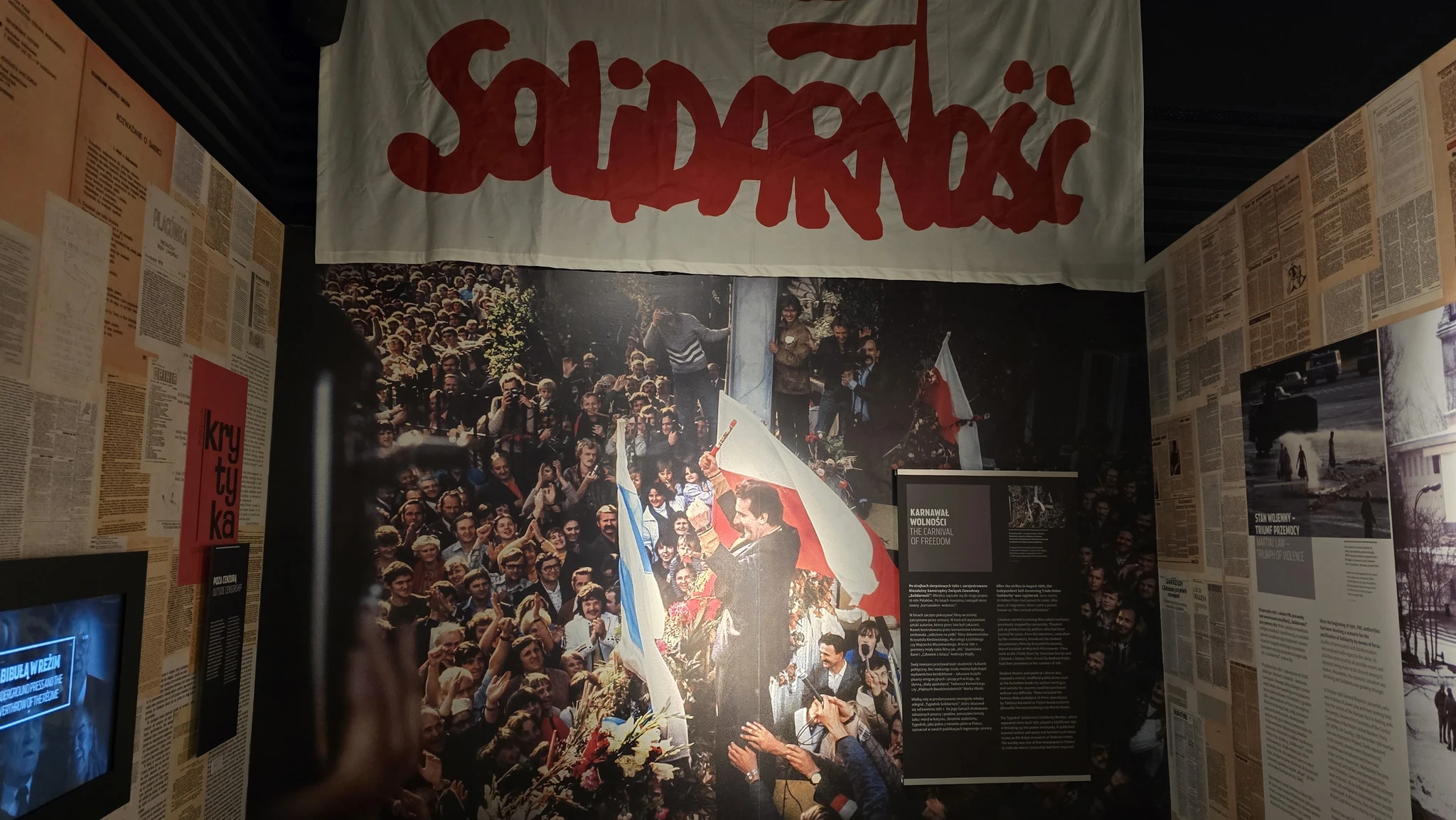 Aga näitus ise koosnes mitmest osast. Alustuseks hakkas kostma Poola hümn. Kostis juba kaugelt ja koguaeg oleks teada tahtnud, et kust see tuleb, miks see tuleb. Allikaks osutus üks Andrzej Wajda film, mille lõik ekraanil jooksis. Seal marssis või pigem kõndis või vantsis üksus Poola üksus ja tegevuskohaks oli Monte Cassino Itaalias. Monte Cassinost olen ma varem kirjutanud ka, et see on poolakatele üks väga oluline koht. Sõdurid lihtsalt kõndisid ekraanil ja laulsid rivilauluks Dąbrowski masurkat, mis on tänane Poola hümn. Mõtlesin otsida, kas seda filmi ka tervikuna kusagilt vaadata saab, aga pole jõudnud. Liikusin sellest ruumist edasi ja kuulsin endiselt hümni. Lugesin ja uurisin juba järgmist infot, aga hümn kõlas peas. Hakkasin ise ka seda ümisema. Lõpuks ei saanud enam aru, kas ma kuulen seda ikka veel päriselt või kõlab see nüüd juba ainult minu peas. Poola hümn on kaasakiskuv.