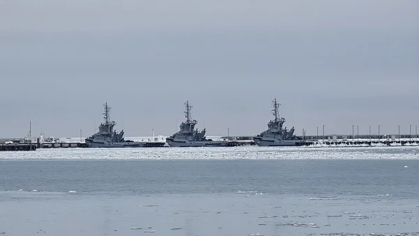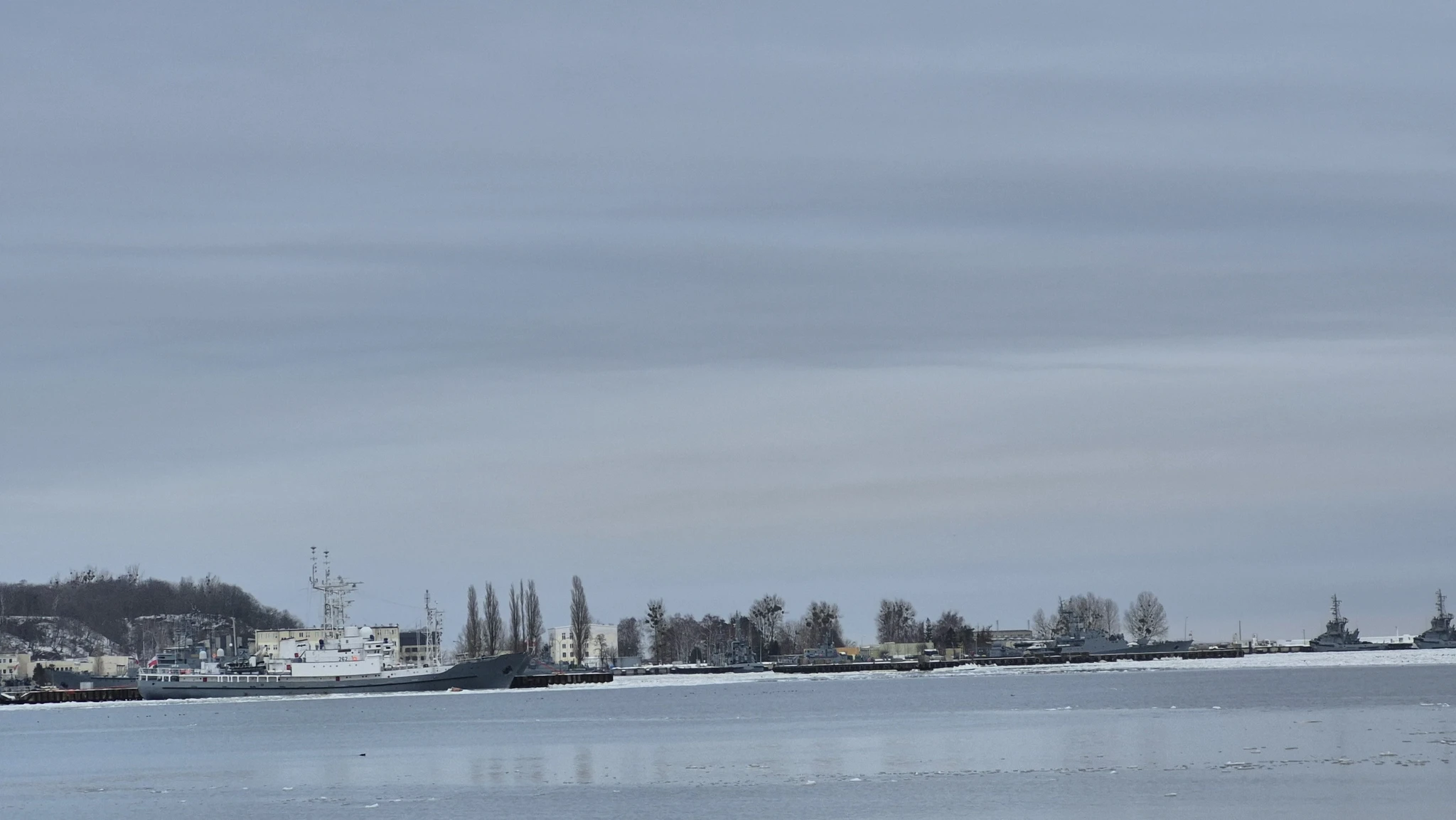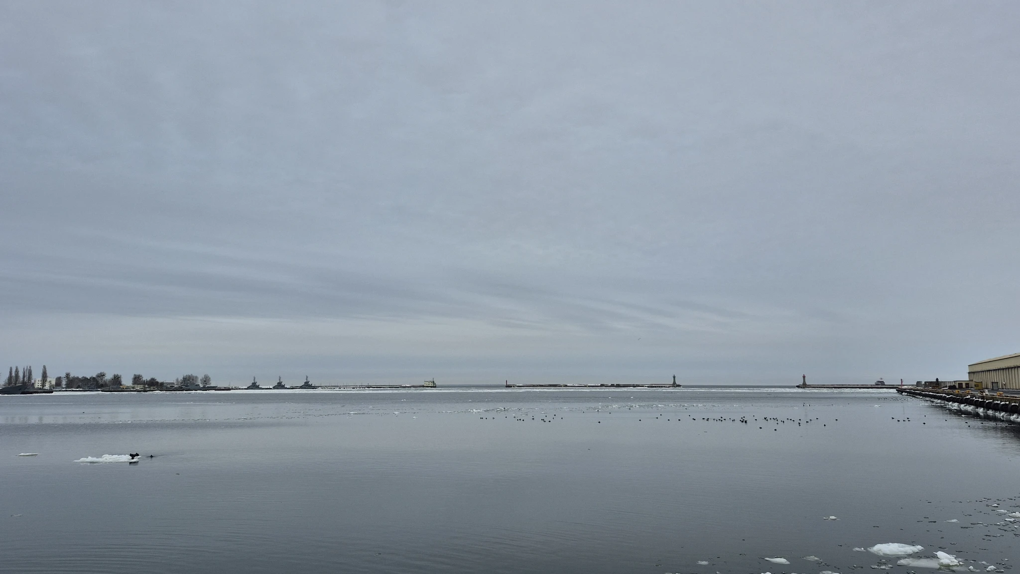 Igal juhul kõndisime me läbi kõheda Gdynia muuseumi poole. Leidsime muuseumi üles, aga ei saanud täpselt aru, millisest uksest sisse peaks minema. Kiikasime enne veel muuseumi juures olevale kaile, kus üllatuslikult oli veel inimesi, lihtsalt jalutamas ja merele vaatamas. Üle lahesopi paistis äkki mingi sõjasadam? Vähemasti nägid seal ankrus olevad laevad sõjakad välja. Kailt avanes ka hea vaade kogu Emigratsioonimuuseumi hoonele. Ma ei mäletagi, kust ma seda juba enne muuseumisse minekut teadsin, aga sealt praeguse muuseumi seina ääres olevalt kailt läkski rahvas laevadele, et kaugele ära õnne otsima sõita.
