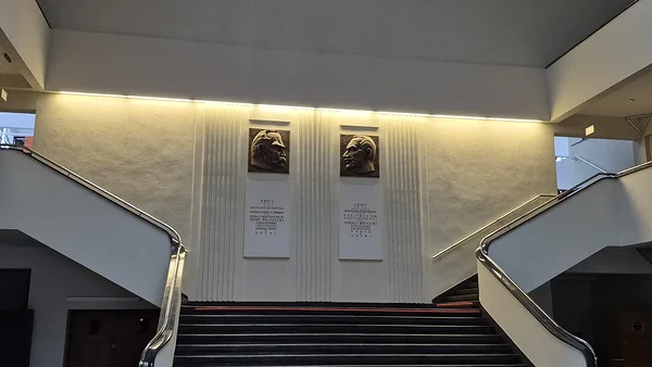 Läksime muuseumisse, eks vist ikka valest uksest, ja sattusime suurde fuajeesse. Maja oli seest väga nõukogude aja hõnguline. Suur kahele poole avanev trepp viis üles. Vaatasime imestunult ringi, et esiteks, ah selline siis ongi, teiseks, kust siis pileti saab osta ja kolmandaks, kust algab näitus. Avastasime ukse, mille peal oli kirjas „Kassa“. Uks ei olnud lukus, me saime sisse minna, aga ma ise oleks eeldanud avatud ust ja nähtavamat võimalust pilet soetada. Võimalik, et see oli selline põhihooaja väline tagasihoidlikum värk ja suvel ikkagi ei saa piletikassa märkamatuks jääda ega ilma piletita sisse minna. Seda viimast oleks me praegu vabalt saanud teha ja mulle ausalt öeldes tundus, et osad tegid ka, sest neil polnud nii teravad silmad nagu meil.