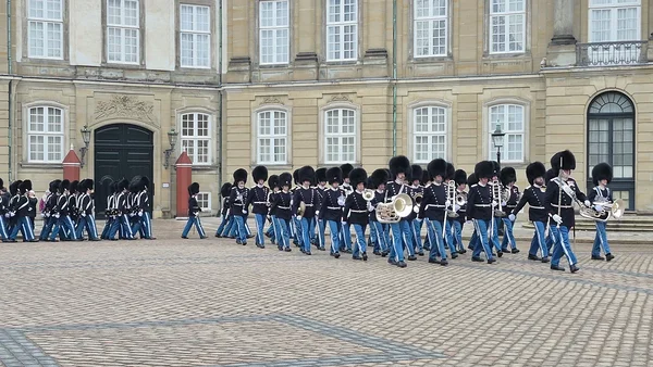 Kuninglik vahtkond valvab Amalienborgi ööpäevaringselt. Nende vormiriietuseks on helepunane jakk, sinised püksid ja kõrge karvane, kuuldavasti karunahast, müts. Kui monarh on residentsis, marsib keskpäeval valvurivahetusega kaasa ka kuninga kaardivägi, keda saadab orkester, mis mängib traditsioonilisi sõjaväemarsse. Meile tundus, et sel päeval, kui meie Amalienborgis käisime, oli kuningas kodus, sest kõik oli suurejooneline. Liisbet imestas küll, et miks kuningas ei käi iga päev väljas, kui vahtkonna vahetus toimub, neid tervitamas ja kas ta tõesti ka sel päeval ei tule. No ei tulnud.