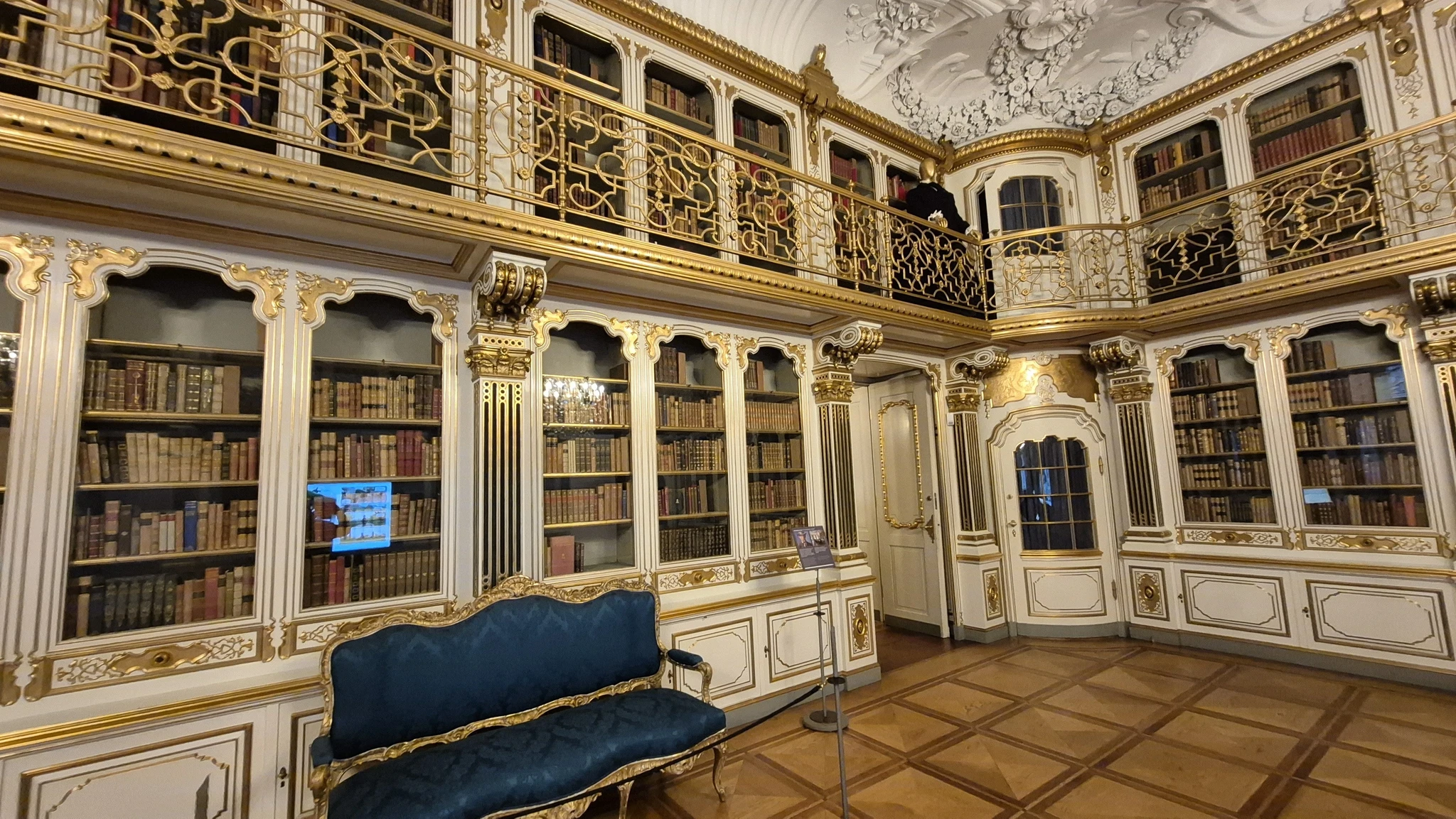 Saalide ja portreede virrvarris oli see rõdu üks, mis meile rohkem meelde jäi ja tähelepanu tõmbas. Teine koht oli raamatukogutuba, kus kõiki seinu katsid täies ulatuses klaasist ustega raamatukapid, mis olid ka äärest ääreni raamatuid täis. Ümber toa jooksis rõdu, mille seinad olid ka täies ulatuses raamatukappe täis. Rõdul oli ka paar ust, mille kaudu sai rõdule siseneda, aga alt või siis nö toast endast trepi või redeli abiga rõdule ei saanud. Rõdule mineku trepid pidid kusagil mujal olema.