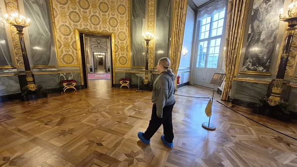 Lossis võtsime me pileti, millega sai külastada lossi esindusruume, kuninglikku kööki, varemeid ja kuninglikku talli. Oma üllatuseks saime teada, et pilet kehtib kuu aega, seega jäi meile võimalus, et kui me sel päeval ei jõua kõiki kohti läbi käia, võime mõnel järgmisel päeval edasi avastada. Alustasime esindusruumidest. Sisenemiseks pidi saabaste otsa tõmbama sinised kilesussid. Kogu lossis oldud aja tundsime, et see on ikkagi oluline ja valvatud koht, sest turvamehi kõndis ruumides meile üsna tihti vastu. Just turvamehi ja mitte muuseumitädisid. Rahvast oli lossis sel ajal vähe – paar seltskonda peale meie, kõik liikusid omas tempos ja enamasti olime me ühes ruumis ikkagi üksinda.