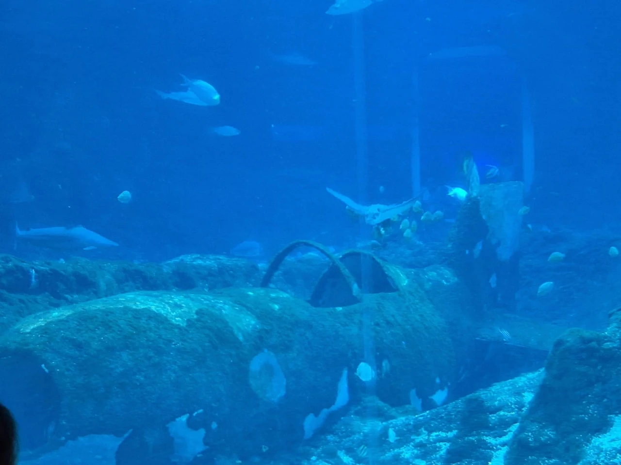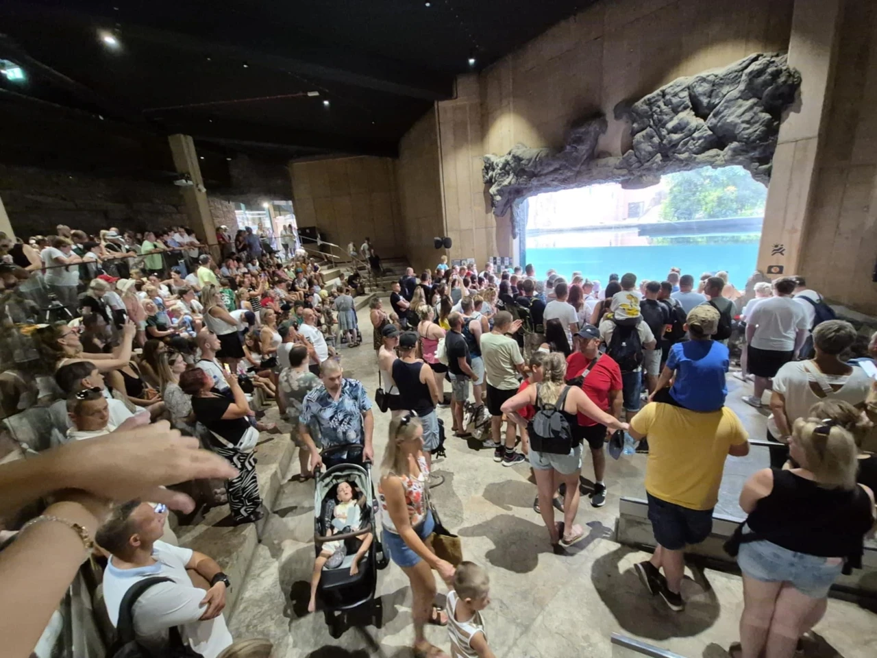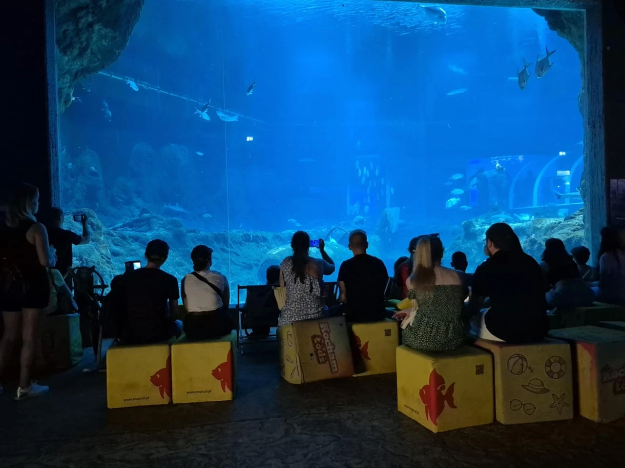 Aga kõige-kõige ägedam oli minu jaoks siiski megasuur ookeaniakvaarium. Seda sai vaadata ühelt poolt ja teiselt poolt ja see kulges toruna üle koridori ning sai ka altpoolt vaadata. Seal olid väiksemad haid ja raid ja muid elukaid ka, kokku umbes 180 liiki erinevaid kalu. Kõige suuremas basseinis on põhjas kuristik, kus lebab Teise Maailmasõja aegse Jaapani hävitaja koopia. Kõige viimasena enne loomaaiast lahkumist me läksimegi selle akvaariumi juurde. Sinna äärde on sätitud rannatoolid ja tumbad ning sinna võibki istuma jääda, muudkui vaatad ja vaatad seda ookeani. Ja milline omaette, aga süsteemne elu seal käib. See meenutas täpselt näiteks Haikala lugu või Käsna-Kallet, kus käib tohutu liiklus, aga ometi süsteemne, valgusfoorid, liiklusmärgid jne. Akvaariumis tegelikult muidugi polnud valgusfoore, aga liiklus käis nii nagu oleks olnud. Istusime seal ja vaatasime ja kuidagi ei tahtnud ennast püsti rebida ja ära minna. Aga no ühel hetkel siiski upitasime ennast üles, läksime taas välja päikese ja kuuma kätte ning süda oli selle loomaias käiguga ikka väga rahul. Kui Łódźis olete, siis külastage kindlasti!
