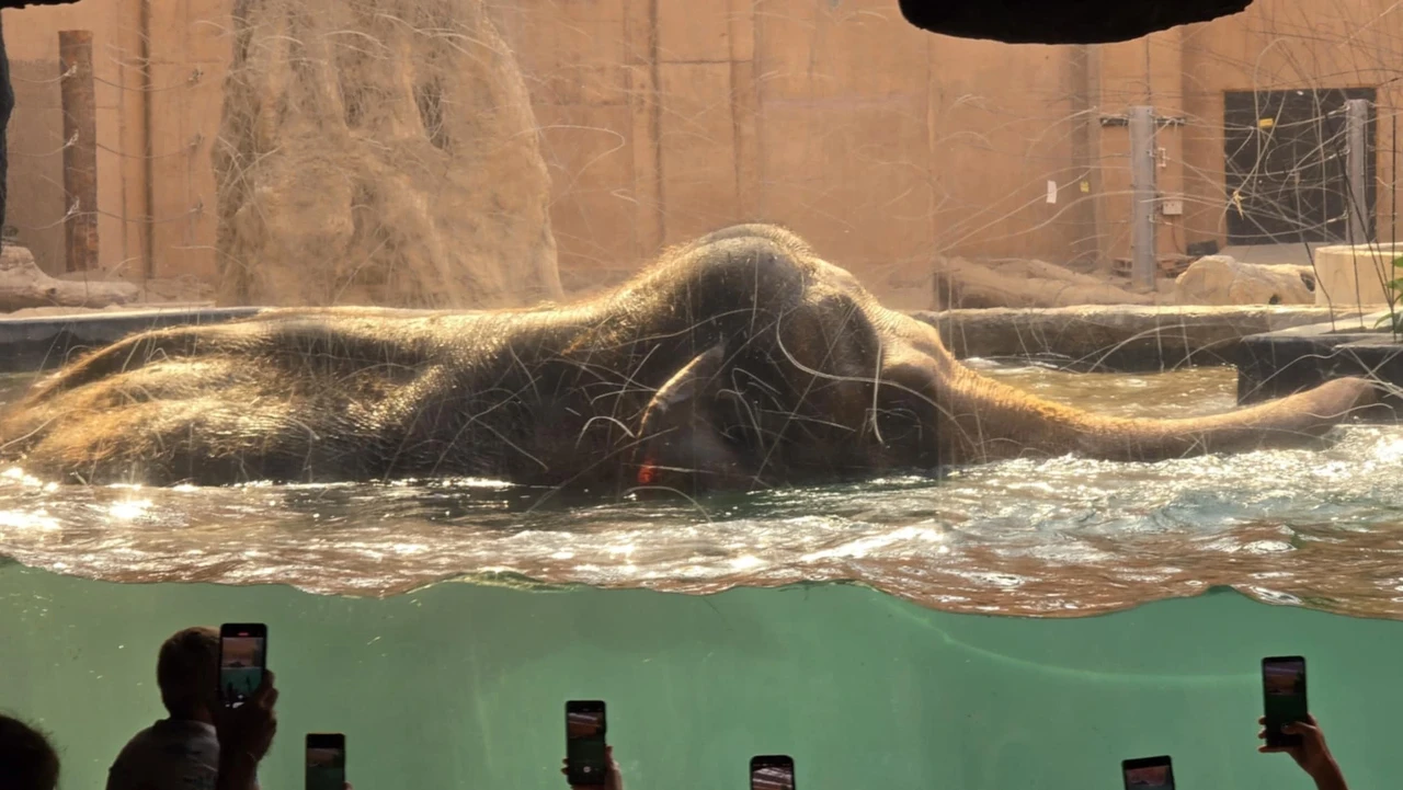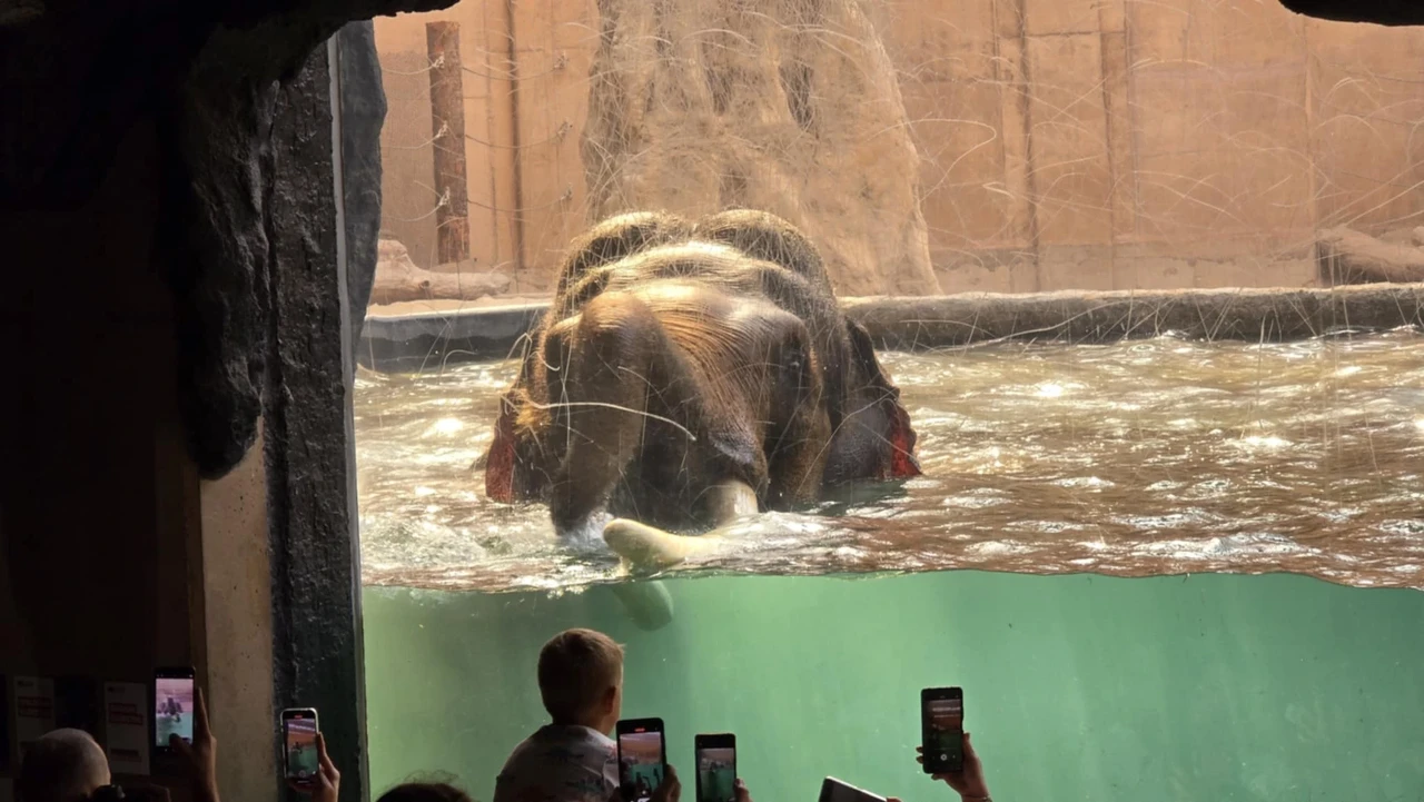 Mingil hetkel, veel enne õiget kellaaega, tulid elevandid õue ja siis oli põnev neid piiluda, kui nad akna vaatevälja sattusid. Ma olin oma mõttes koguaeg juurelnud, kuidas elevandid vette kupatatakse? Torgitakse neid harjavarrega? Käib mingi helisignaal, mille peale elevandid on harjutatud vette minema? Sest kui iga päev on kaks korda välja kuulutatud elevantide vann, siis midagi peab ju rahvale näitama ja keegi peab vette minema. Aga kas elevant läheb vette, sest ta teab, et kell hakkab 11 saama? Üllatav oli see, et kedagi ei pidanud kuhugi kupatama. Elevandid tegid algul kuival maal liivaprotseduure ehk viskasid endale londiga ohtralt liiva selga. Ja siis astus kõige veelembesem neist lihtsalt üle basseini ääre ja läkski ujuma. Kell polnudki veel üksteist. Seal ta siis ujus ja mõnules. Teine elevant katsus korduvalt varbaga vett ja see vist ei meelitanud teda nii väga. Küll aga meelitasid teda õunad, mida neile vannisnäkiks vette loobiti ja nii tuli tema ka ujuma. Kolmas elevant käis ka basseini äärel kiikamas ja oli eelnevalt liivaprotseduure teinud, aga vette ta siiski ei läinud ja keegi ei sundinud ka, õnneks. See elevantide vann oli väga nunnu ja palju ägedam vaadata, kui ma arvanud olin. Neile lasti voolikust vett peale ja vähemalt üks neist, see, kes esimesena vette ja viimasena välja läks, tundis ennast küll silmnähtavalt nagu spas.