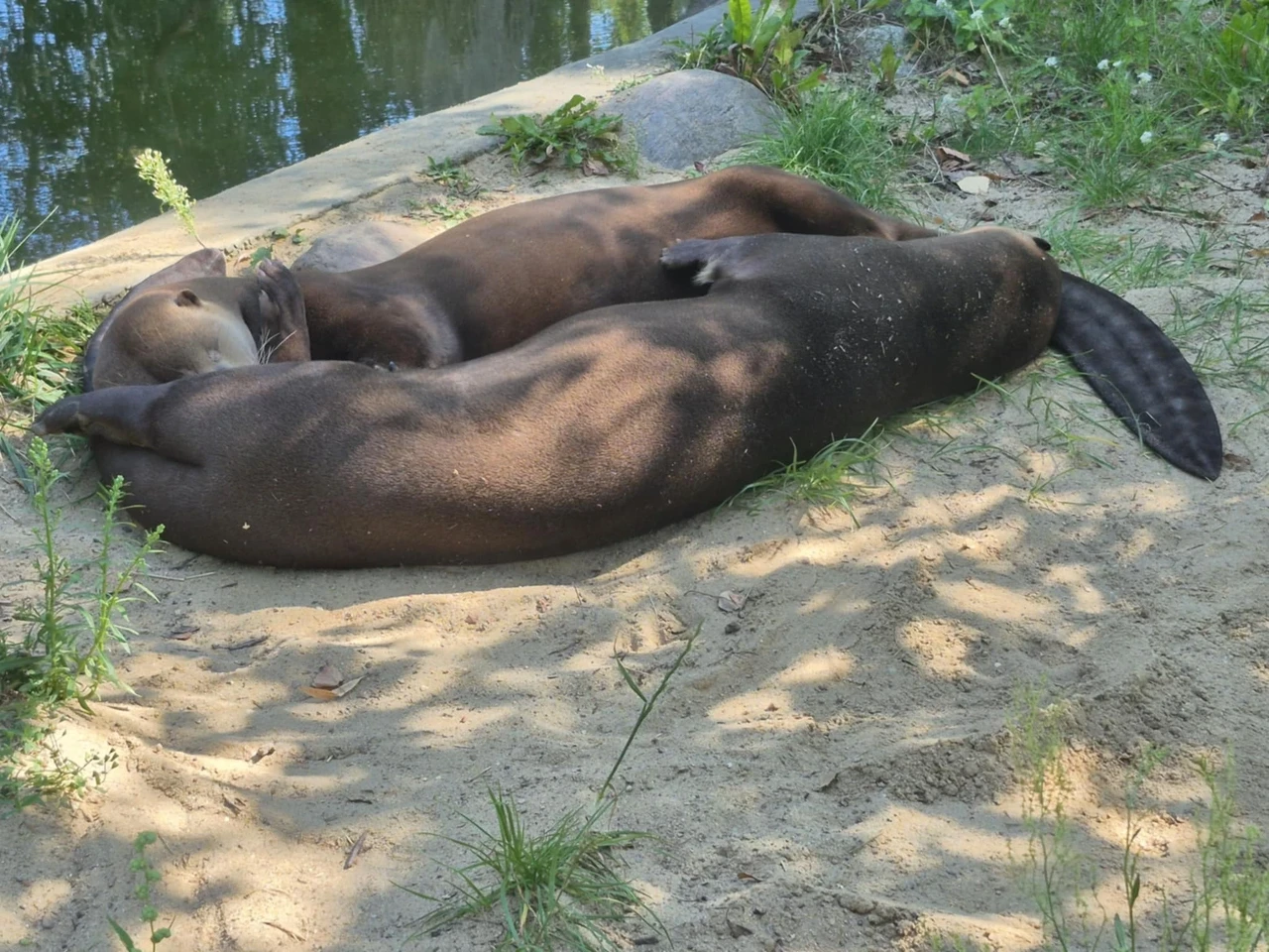 Łódźis on kolm kapibaarat. Alles söögiajal saime me aru, et üks neist on kõvem käbi kui teised kaks ja no üks oli meie kurvastuseks üsna tõrjutud. See kõige bossim läks nende ühise toidukasti juurde, ronis sinna jalgupidi sisse ja ajas teised joonelt minema, kui nad kastile lähedale julgesid tulla. See kast oli selline harilik kaubakast ja see oli ääreni värsket kraami täis – peet, suvikõrvits, kurk, kartul jne. Kõik oli viiludeks lõigatud ja tundus päris maitsev. Maitsev tundus see ka bossile kapibaarale, kes muudkui sõi ja sõi üksinda. Liisbet läks juba päris kurvaks, et teistel ei jäänudki muud üle, kui paari laiali visatud kartulit järada. Me vaatasime ja vaatasime, et kas mingil hetkel saavad teised ka löögile. Kui pool kasti söödud, hiilis teine kapibaara ka vaikselt kasti juurde ja asus tagasihoidlikult sööma. Nüüd ei teinud boss tast enam välja, aga ise ka söömist ei lõpetanud. See kõige tõrjutum kapibaara ei tulnud ikka veel ligi, vaatas kaugelt. Toit muudkui kahanes ja meie mure ka. Lõpuks me lihtsalt ei jaksanud enam seal kapibaarade juures olla, et ära oodata, kas kolmandale jääb ka mõni peediviil või mitte. Läksime ära, aga kurb tunne jäi sisse edasi. Kusjuures pealtnäha ei olnud see bosskapibaara teistest üldse paksem või suurem, pigem oli väiksem.