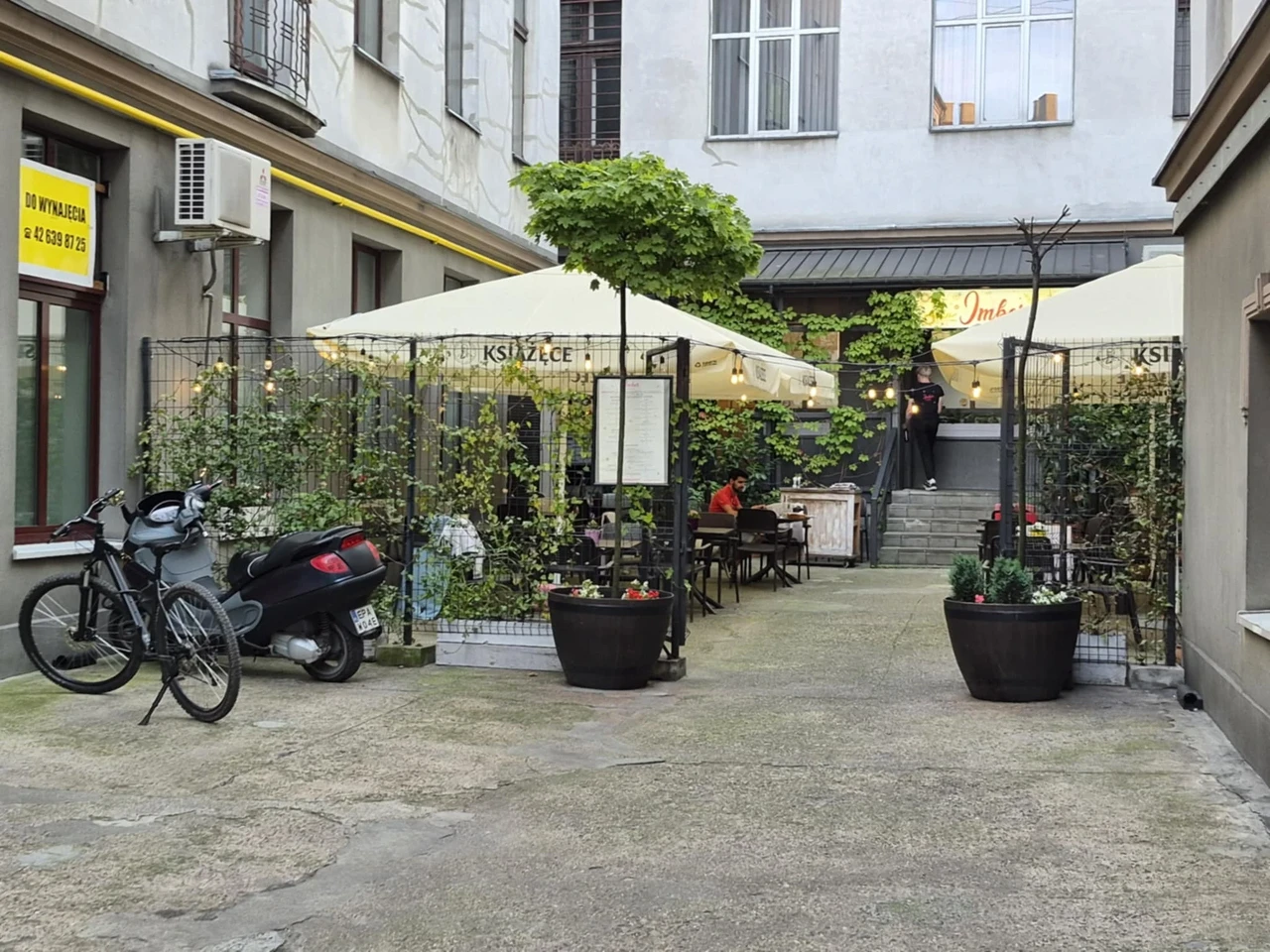 Aga kahes söögikohas käisime me Piotrkowskal küll :). Esimene neist oli mul juba varem välja vaadatud, et sinna võiksime võimaluse korral minna ja no läksimegi ja õnneks oli kohti ka, mida vist alati ei juhtu. Koha nimi on Imber, see asub ühes Piotrkowska tänava sisehoovis ning seal pakutakse juudi sööke ja Łódźi kohalikke roogasid. Hoovis restorani ees olid väljas lauad ja sinna me ennast sättisimegi. Kujundus oli armas ja lihtne. Menüüs oli kenasti kirjas ka, et mis sealt menüüst on juudi road ja millised on kohalikud palad, lisaks muidugi ka mõned tavapärased Poola road. Kaalusime pikalt, mida võtta ja mida jätta, kartsime, et pingutame suures soovis kõike proovida, jälle üle. Aga ohhooo, seda restot julgeme küll kõigile, kes armastavad kohalike maitsete proovimist ja midagi uut ning tahavad mõnusat söögikogemust saada, soovitada. Ehk siis Łódźis külastage Imberit.