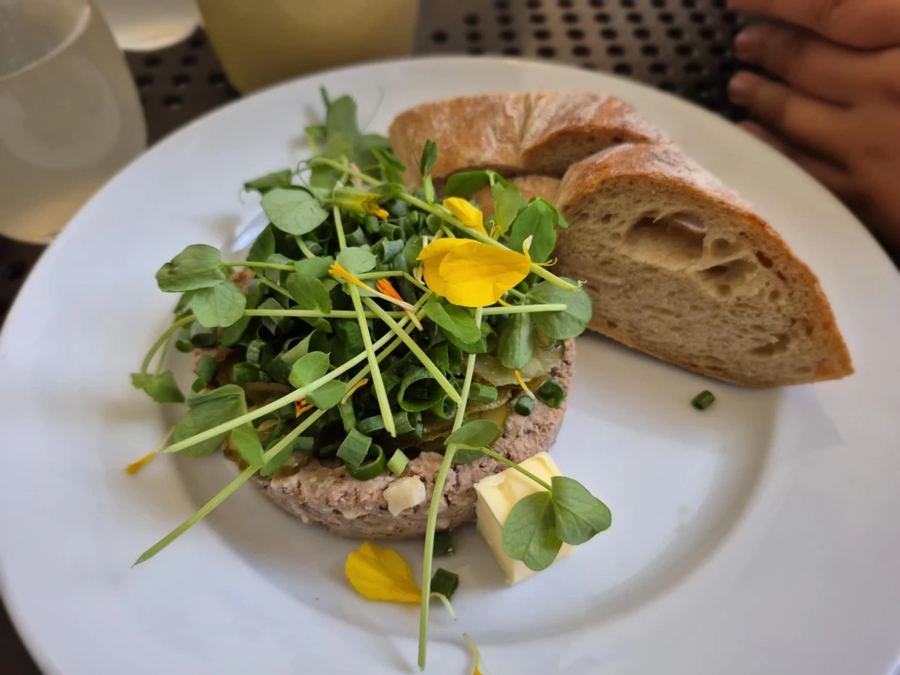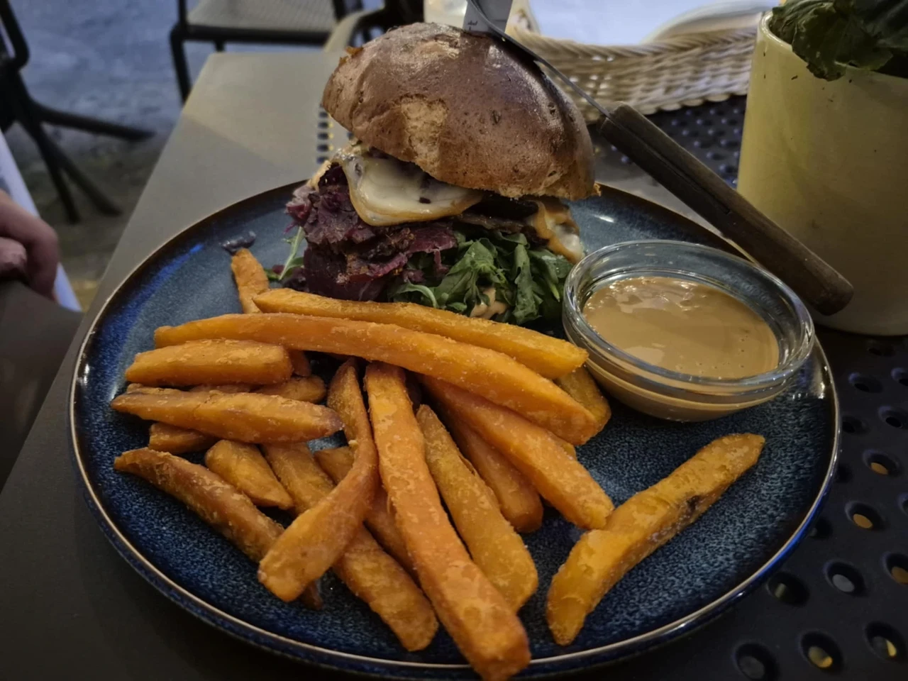 Väga põnev ootus oli ka Žulik pastramiga osas. Žulik on tume türgi köögist pärinev leib. See sisaldab erinevaid ained sh näiteks kohvi. Ja Žulik on ennast ammu aega tagasi Łódźi köögis sisse seadnud. Me ootasime mingeid huvitavaid leivaviile koos pastrami ja muu kraamiga, aga toodi burger. Olime täitsa üllatunud ja arvasime, et meie seda ei tellinud, aga no see oligi žulik. Tõsi, burksi sai oli natuke tumedam küll. Burgeril ei olnud viga, maitses hästi, aga me oleks ilmselt midagi muud tellinud, kui me oleks teadnud, et see on burger. Sai ei olnud päris tavaline, aga ma väga mingit tuntavat erilist maitset selle juures ka ei tundnud.