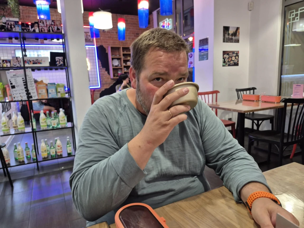 Meil oli ka üks teine resto Off Piotrkowskas varemalt välja valitud, kuhu mõtlesime sööma minna, aga plaanid muutusid. Käisime korduvalt mööda Piotrkowska tänaval asuvast Korea restoranist. Me pole Korea sööke söönud, ega tea neist midagi, aga see kutsus meid igal mööda käigul. Ükskord astusime lähemale ja piilusime ukse taga olevat menüüd. Tundus, et igaüks meist leiaks midagi, mida tellida ja õnneks ei olnud menüü liiga keeruline või pikk. Otsustasime, et oma viimase Łódźi õhtusöögi teeme seal, saagu, mis saab. Mõeldud, tehtud! Astusime õigel õhtul hoogsalt restorani sisse. Leti taga olev neiu selgitas kohe rõõmsalt, et palun, siin on teile menüüd, istuge, kuhu tahate, aga tulge tellige letist. Selge. Läksime ja istusime ning hakkasime menüüd uurima. Restoran oli interjöörilt selline kodusem kiirtoidu resto ja seal ei olnud kuigi palju laudu – 9-10 ehk kokku. Üldiselt olid lauad kogu aja hõivatud. Kui keegi ära läks, tulid peagi uued inimesed asemele.