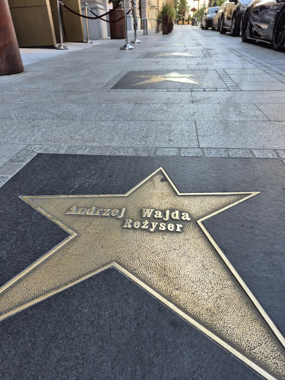 Mida Piotrkowska tänavalt veel põnevat leiab? Näiteks on seal kuulsuste allee, no selline tähtedega, nagu Hollywoodis. Seal on tähed olulistele Łódźi ja filmindusega seotud inimestele. Mina leidsin sealt Andrzej Wajda tähe, aga ülejäänud kuulsused oli kahjuks võõrad.