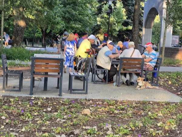Kui eelnevalt uurida, mis need Łódźi põhikohad on, kus peaks ära käima, siis neid kohti on palju, aga seal hulgas ei ole vanalinna. Vanalinn on ju esimene asi, kuhu igas linnas juhatatakse ning eriilmelised raekojaplatsid on need, mille järgi meeles pidada, milline vanalinn mis linna juurde käis. Kui üritada ette kujutada Łódźi vanalinna või vanemat osa, siis ma olen üsna kindel, et inimestele kerkib silma ette Piotrkowska tänav, kus on tõesti vana ilmega maju, aga see pole siiski see. Kunagi oli Łódźil ka vanalinn. Linnaosa mõttes on ka praegu olemas linnaosa nimega vanalinn. Ainult et vana seal peaaegu polegi. Łódźi kunagist vanalinna nimetatakse nüüd „kadunud kvartaliks“. Ega ma sellele enne väga palju ei mõelnud ja sellest midagi ei teadnud, kui me Meelisega jalutades puht juhuslikult stiilis näe-seal-on-mingi-park-lähme-vaatame, sattusime vanalinnaparki. Park oli suur ja erinevateks aladeks jagatud. Seal oli näiteks koerte mänguplats, laste mänguplats, purskkaevud, veesilm jne jne. Park ei olnud liialt klanitud. Łódźis ei ole miski liialt klanitud. Aga pargis olid väga suured puud ja rohkelt inimesi, kes mõnusalt aega veetsid. Näiteks mängisid härrade grupid pargilaudade taga kaarte. Teised mehed (vanemad, nooremad, valge- ja mustanahalised) mängisid pingpongi. Seda oli nii lahe vaadata, kuidas see oligi see tavaliste inimeste, kohalike, lusti- ja kokkusaamiskoht, kus mõnusalt pikka nädalavahetust veedeti. Sealt vaid mõnesaja meetri kaugusel pulbitses elust ja turistidest tulvil Piotrkowska tänav, aga seal pargis ei teatud sellest justkui midagi.