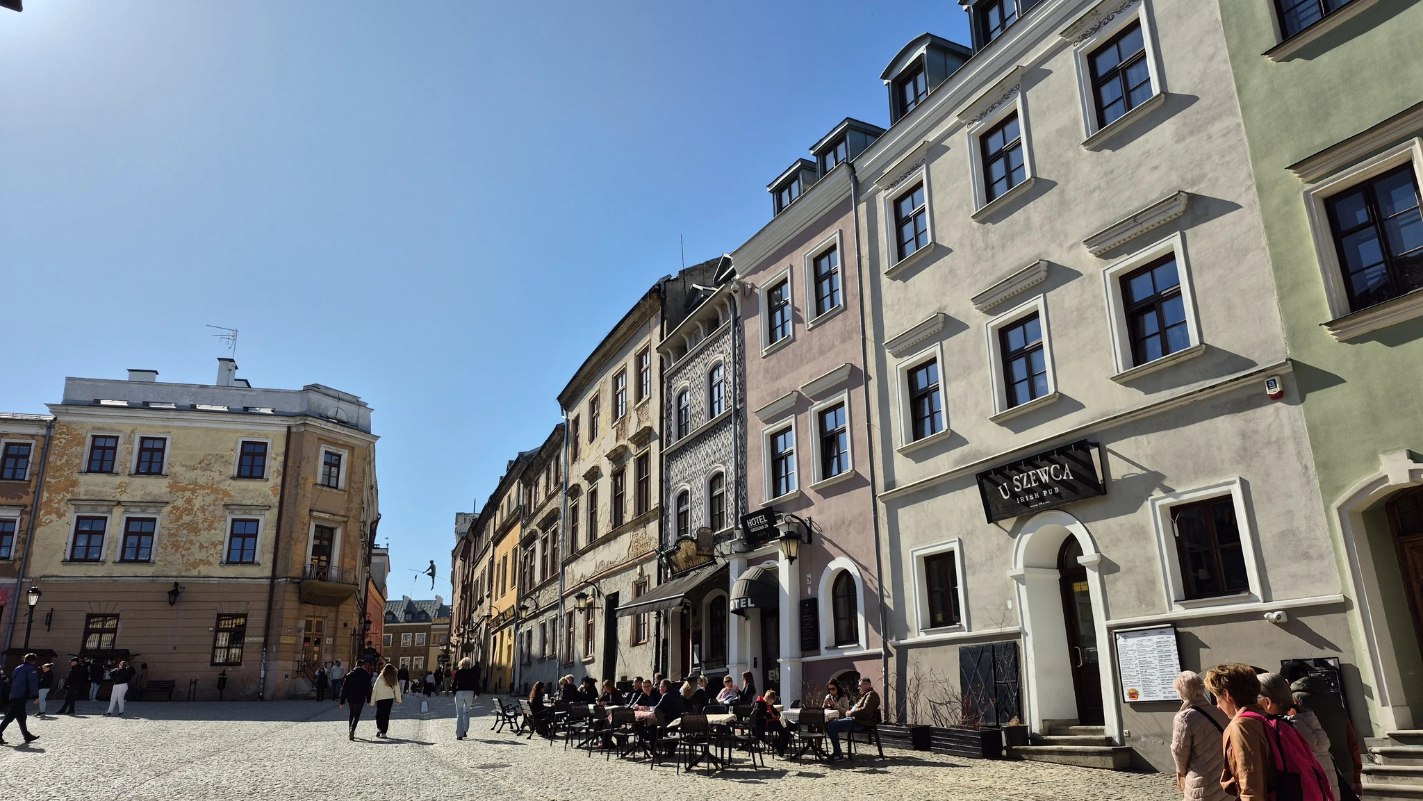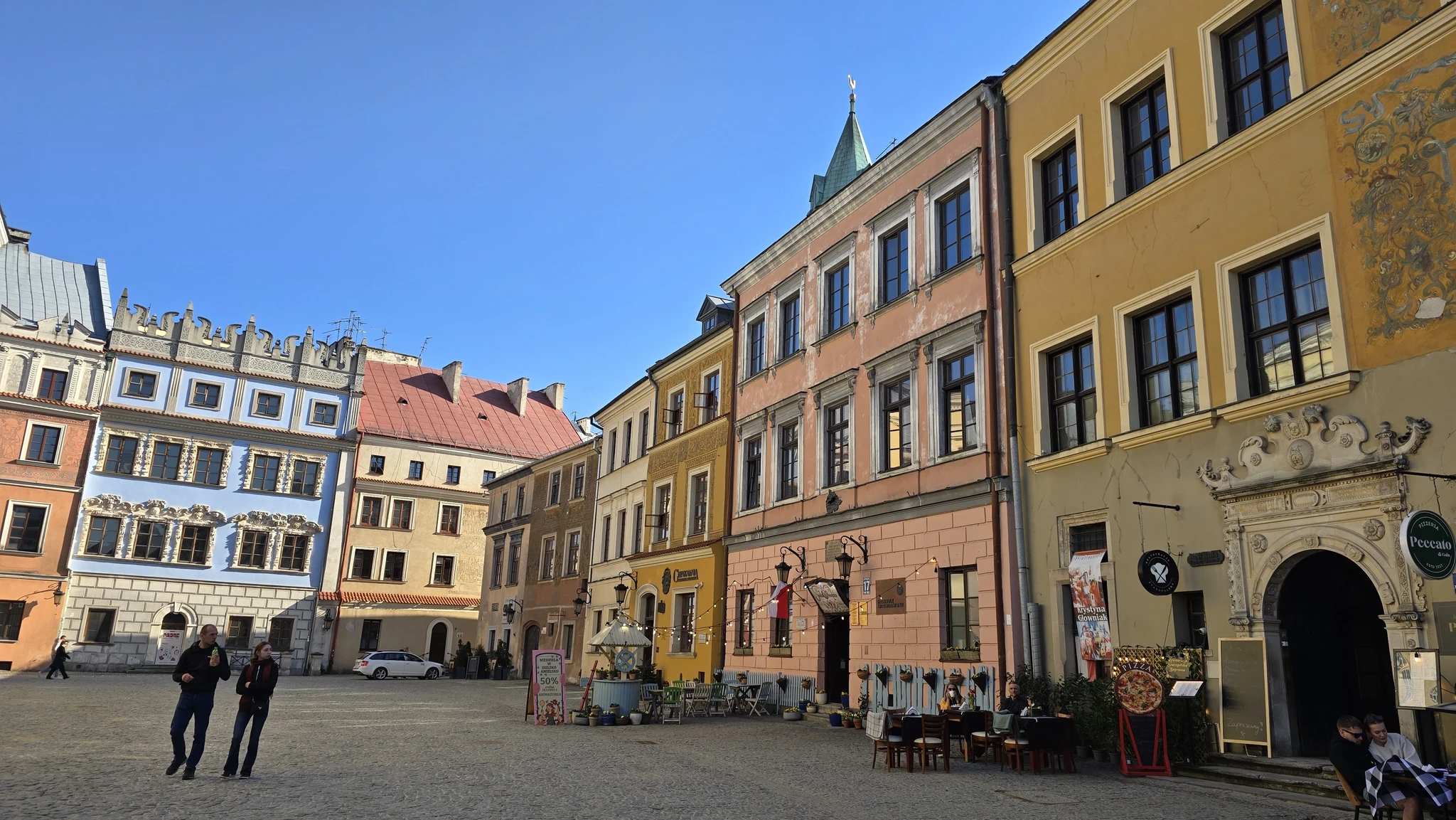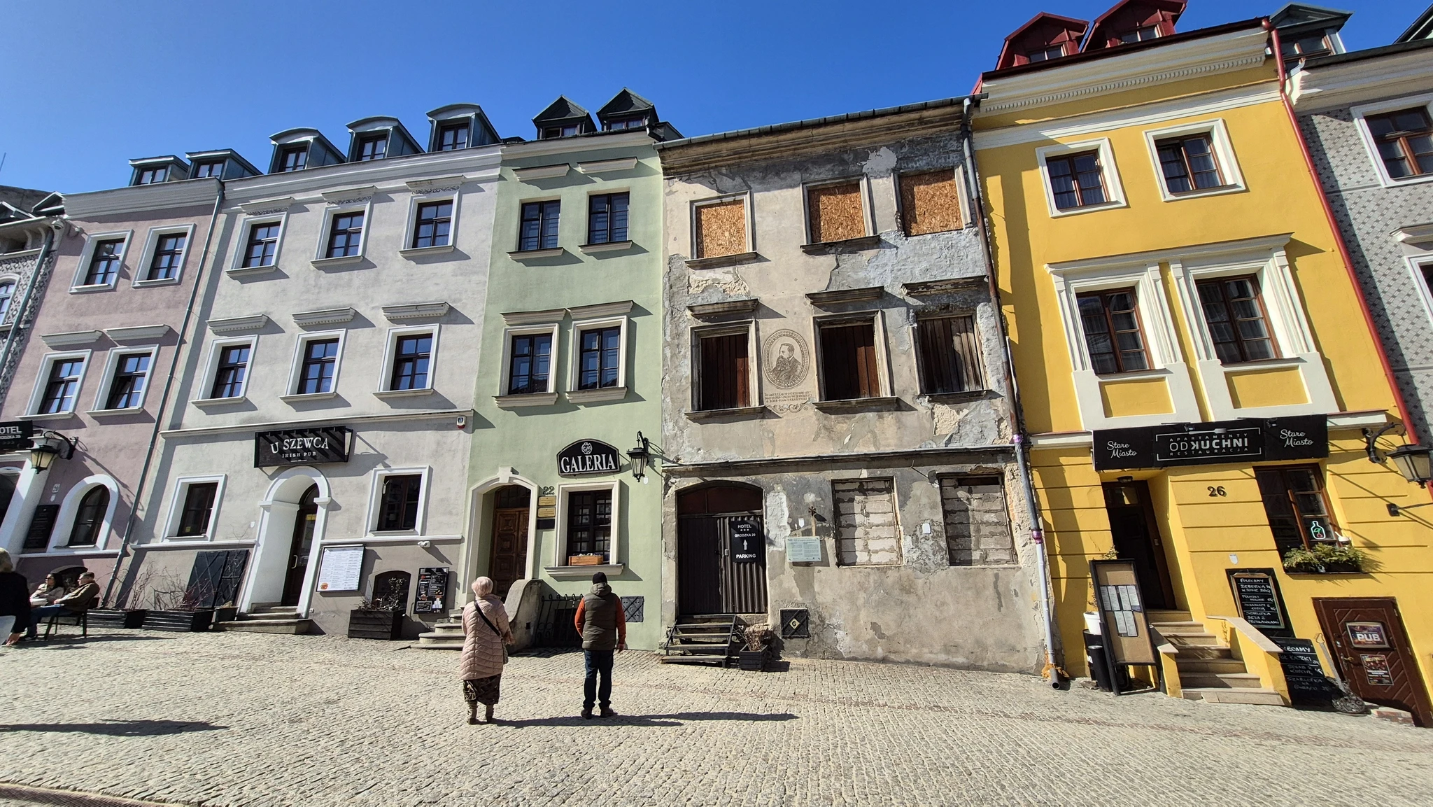 Teiseks hakkab silma, et Lublin ei ole nii üles vuntsitud, kui teised Poola linnad, kus me käinud oleme. Ei, Lublin pole majajäetud ega kole. Seal on palju imeilusaid renoveeritud maju, aga nende kõrval on ilmselt sama vanad majad ja tegelikult sama imeilusad, aga silmnähtavalt pole need ammu uut kuube saanud. Mulle tegelikult meeldivad need ajahambast räsitud majad rohkemgi. Lublinil on selline tuntav armas vana aja hõng juures. Naljakal kombel on vanalinnas ka paljud poodide ja söögikohtade sildid silmnähtavalt retrod. Jälle, mitte koledad ega räämas, aga retrod.