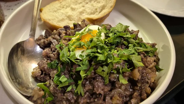 Me lõpuks valisime menüüst ikkagi seda, mis meile endile meelepärane tundus. Ma pean ütlema, et ma kartsin, et kapsasupp mandlite ja rosinatega ei pruugi minu kausike suppi olla ja ei olnud ka. No vastik ka polnud, sõin ära, aga rohkem ei taha. Maksatoidud olid head. Meile kõigile meeldis näiteks juudi kaaviar, mis oli tegelikult praetud ja hakitud kanamaks kreekapähklite ja sibulaga. Sõime, jõime ja olime rahul – mõnus õhkkond, autentsus, väga lahke teenindus ja ikkagi maitsvad toidud ka. Soovitame soojalt, kui soovite Lublinis erilist söögikogemust saada.