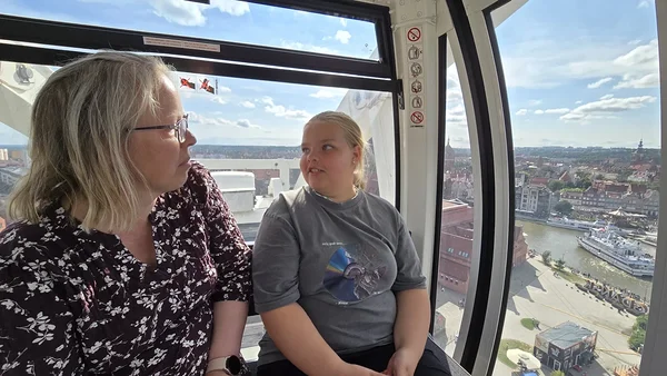 Oleme ammu plaaninud, et läheme kunagi vanalinnas asuva Amber Sky nimelise vaaterattaga sõitma. Liisbeti järjekindlal eestvedamisel tegimegi selle laada ajal ära. Minul oli värskelt meeles , et Valjol ei olnud väga äge kogemus seal käies ja ma palju ei lootnud. Ehk olen ma liiga kriitiline, aga see tõesti ei polnud ei kuigi hirmus, õnneks, ega ka kuigi meeldiv kogemus. Kabiin tiirutas oluliselt kauem, kui me oleks tahtnud. Vaadata ei olnud sealt nii väga midagi ja seega oleks juba alla tahtnud, aga sõitu sai ikka kogu raha eest. Kuna ilm oli päris soe, siis kabiinis oli muidugi väga soe ning oo, kui hea oli lõpuks välja ja värske õhu kätte saada. Tahaks öelda, et kui te Gdanski tulete ja on valida, mida teha, siis me pigem Amber Sky-d ei soovita, aga ma ei saa seda öelda. Sügise hakul võeti Amber Sky maha ja asendati mitu meetrit kõrgema rattaga, seega võib nüüd ju kogu kogemus teistsugune olla.