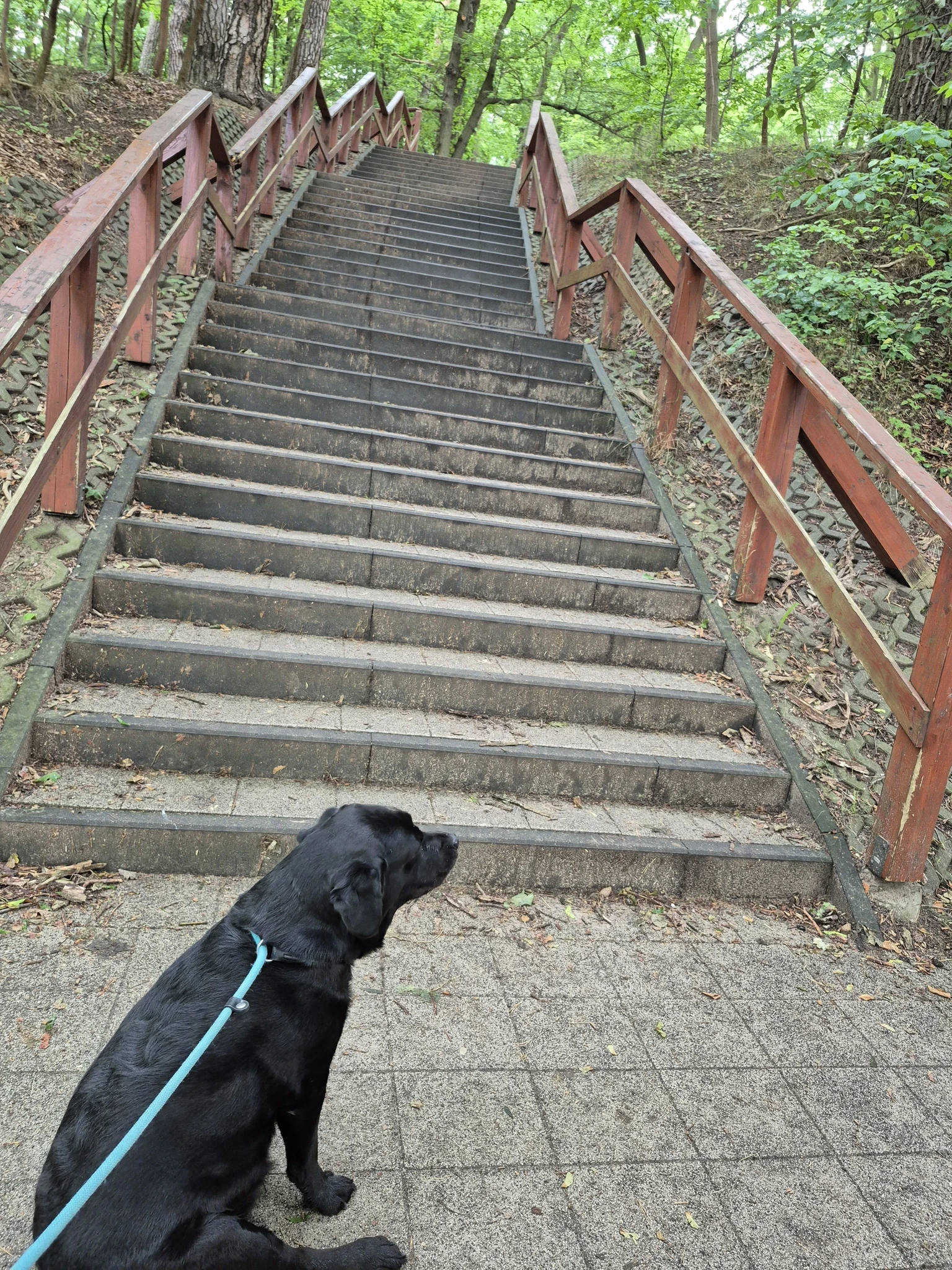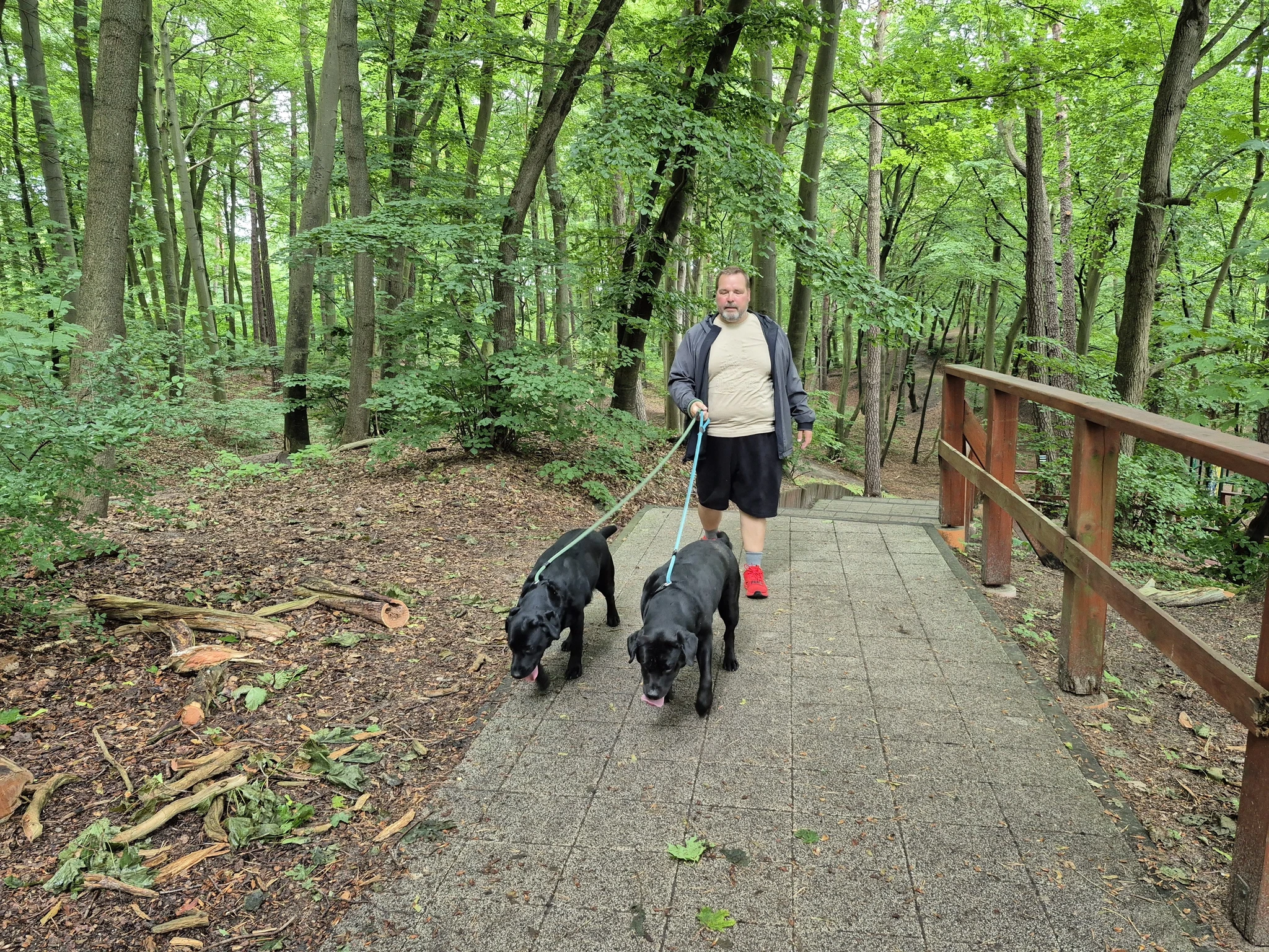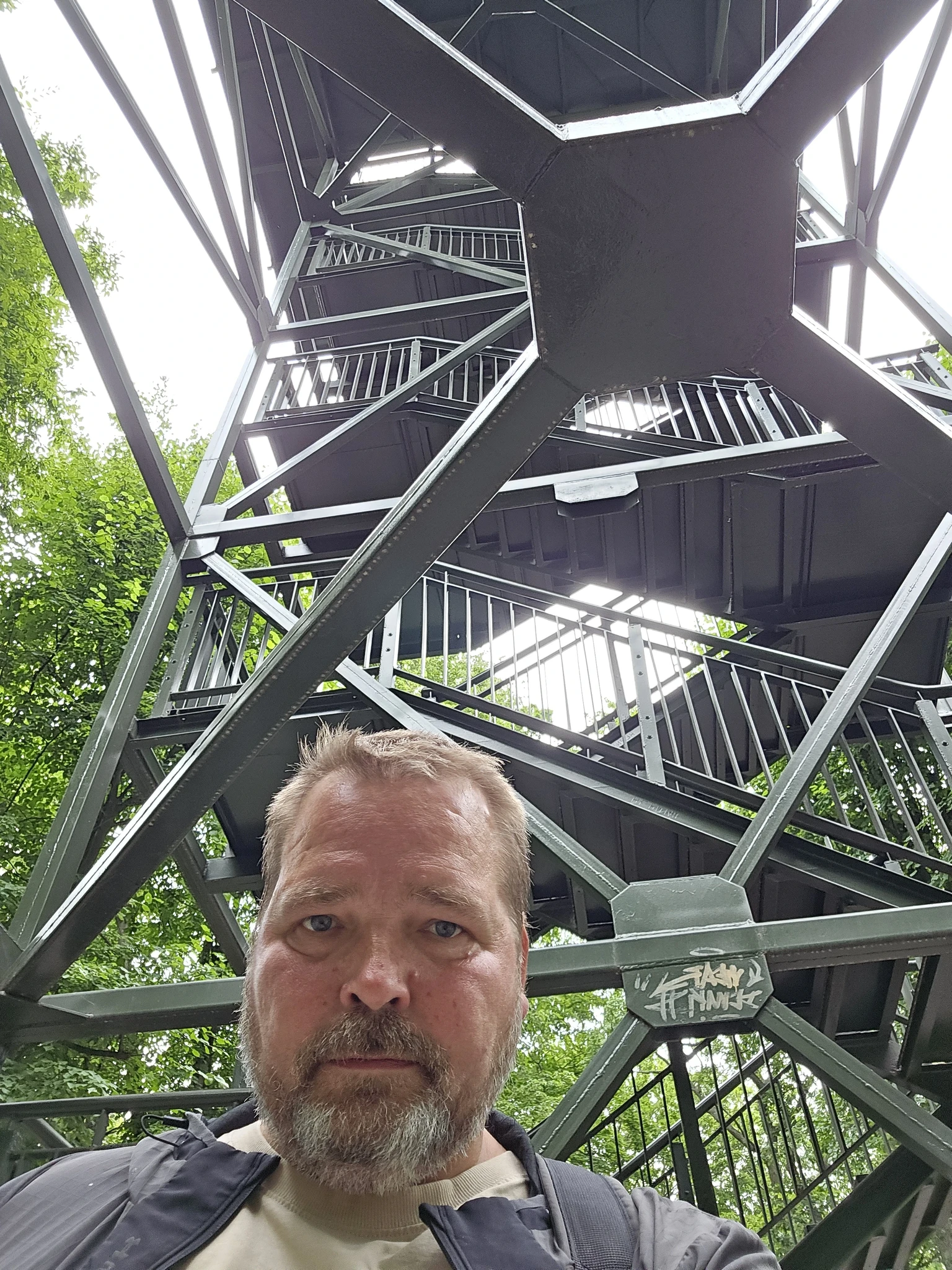 Ühel vihmasel päeval oli mul tunne, et täna võiks sinna mäe otsa vähemasti üritada minna. Tegin arvutis veidi eeltööd ja see tundus ikkagi jala ka tehtav vahemaa olevat. Kui me Meelise ja koertega juba Oliwa poole kõndisime, ütlesin ma Meelisele, et ma mõtlesin sinna mäe otsa minna. Meelise näost oli näha üllatust, aga ta on alati siiski valmis kõik asjad kaasa tegema, mille peale ta tegelikult alguses tahaks öelda, et hull oled või. Ja nii me siis läksime. Tegelikult oli see küngas üllatavalt lähedal. Tarvitses vaid Oliwa katedraalist veidi edasi kõndida ja juba olidki trepi juures, mis künka otsa viis. Vot need trepid nõudsid ikka mitu korda puhkamist ja ähkimist, aga niimoodi tasa ja targu me ikkagi üles jõudsime.