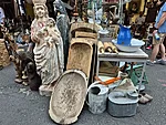Traditsiooniliselt on üks väga suur osa dominiiklaste laadast antiigikaupmeeste ja vanakraamiga kauplejate käes. See ollagi üks laada oodatumaid osasid ja nii suuri vanakraamilaatu teisi naljalt ei ole. Naljakal kombel, aga me pole varem jaksanud kogu laata läbi käia ka, juhtusime me Meelisega antiigiossa sel aastal esimest korda. Oooo, see tõesti oli kõige suurem vanakraamiturg, kuhu ma iial sattunud olen. See muudkui läks ja läks ja läks aina edasi. Kraami oli väikesest pudi-padist kuni hiiglasuurte kivikotkaste, pronkskujude ja tõllani välja. Jääb mõistmatuks, kuidas need, arvatavasti ikkagi väga rasked, kujud kohale veeti. Rekkadega? Ja täpselt sama arusaamatu on meie, kui vanakraamikaugete inimeste, jaoks see, et miks need tõllad, kotkad ja karud sinna kohale veeti? Vaevalt, et müügiks. Pigem ehk olid need justkui näitusele toodud. Me ainult vaatasime ja imestasime – kümnete kastide kaupa vinüülplaate, ka CD-plaate, legomehikesi, õudusfilmidesse sobivaid nukke ja muud väga erinevat kraami. Muidugi oli seal asju, mis meile ka meeldisid. Näiteks heidame me silma igasugustele kašuubia mustriga nõudele. Meil on vist juba neli erinevas suuruses kašuubia vaasi ja ma kinnitan nii endale kui Meelisele, et aitab küll, rohkem tõesti pole vaja, aga see ei tähenda, et midagi põnevat nähes, ei tekiks tunnet, et aga see on meil ju ikkagi puudu. Antiigiturult pääsesime me siiski õnneks ilma igasuguse kolata, ainult ääreni imestust ja elamusi täis, välja. Laada muust osast siiski lubasime lastel endale midagi valida ja ostsime ise ka tervelt kolm asja. Esiteks vineerist sildi, mille peal on kaks labradori ja kiri „Ma olin normaalne kaks koera tagasi“. See ripub nüüd meie välisuksel. Teiseks ostsime me keraamilise riivi. Nägime sellist asja esimest korda ning seda tutvustati nii vahvalt ja riivid olid ägedad, mustrilised ja värvilised. Lisete muidugi ütles, kui me õhinal oma riiviga koju jõudsime, et selliseid müüdi Malagas igas putkas. See ei kahandanud meie rõõmu, eriti. Aga peab ütlema, et Lisete ise on riivi siiski kasulikuks tunnistanud ja on selle põhikasutaja – riivides peamiselt küüslauku ja juustu. Ja kolmandaks ostsime me Krakowi pusle.
