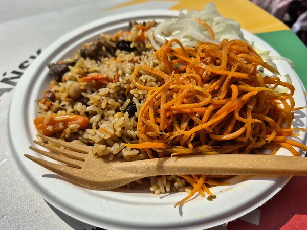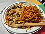 Ei, me ei läinud sinna otseselt midagi ostma. Pigem on kogu see laadamelu kogemist väärt ja no tegelikult on seninägematuid ja ülilahedaid asju ka lettidel, millest pole osanud mõeldagi. Laadal on erinevad tänavad ja näiteks üks suur osa on kunstitänav, kus müüakse muidugi väga palju erinevaid ja ka väga palju samasuguseid ehteid. Aga oli ka absoluutselt erilisi kunsti alla liigituvaid asju. Loomulikult on laadal palju käsitööd ja on toidutänavad. Viimastel pakutakse nii poola köögi parimaid palasid, kui ka maailma maitseid. Meie proovisime näiteks esimest korda ungari langošeid, mis on sellised fritüüritud taignalatakad, mis keeratakse pooleks ja kuhu vahele pannakse vastavalt sinu eelistustele kraami. Need olid väga head – rõõmsa meelega proovime teinekord jälle. Siis maitsesime veel, jälle esimest korda, kreeka pitat, mis osutus kebabilaadseks ja kebabimaitseliseks tooteks. Kahjuks ei mingit uut elamust. Küll aga oli uus ja maitsev elamus, ei mäletagi enam mis riigi, pilaff. Mina ei ole tegelikult eriline pilaffi või plohvi sõber, aga Meelisele maitseb see roog väga ja seepärast ma ütlesingi talle, et läheme ja võtame prooviks. See, mille me saime, oli minu arvates ilmselgelt see päris pilaff – rosinate, sibula, erineva liha ja ma ei teagi millega kõik veel. Aga minu imestuseks oli see ilma tomatiplögata. Ja see maitses mulle väga! Meelisele mitte nii väga :D. Ma olen siiani arvanud, et see, mis mulle plohvi juures ei meeldi on liha, aga nüüd tõdesin, et võibolla on see hoopis tomatikaste. Ja no see, mis mulle ei meeldi, ongi see nõukogude aegne rohkest tomatiplögast küllastunud plohv, aga laadaplohv oli hoopis teine asi.