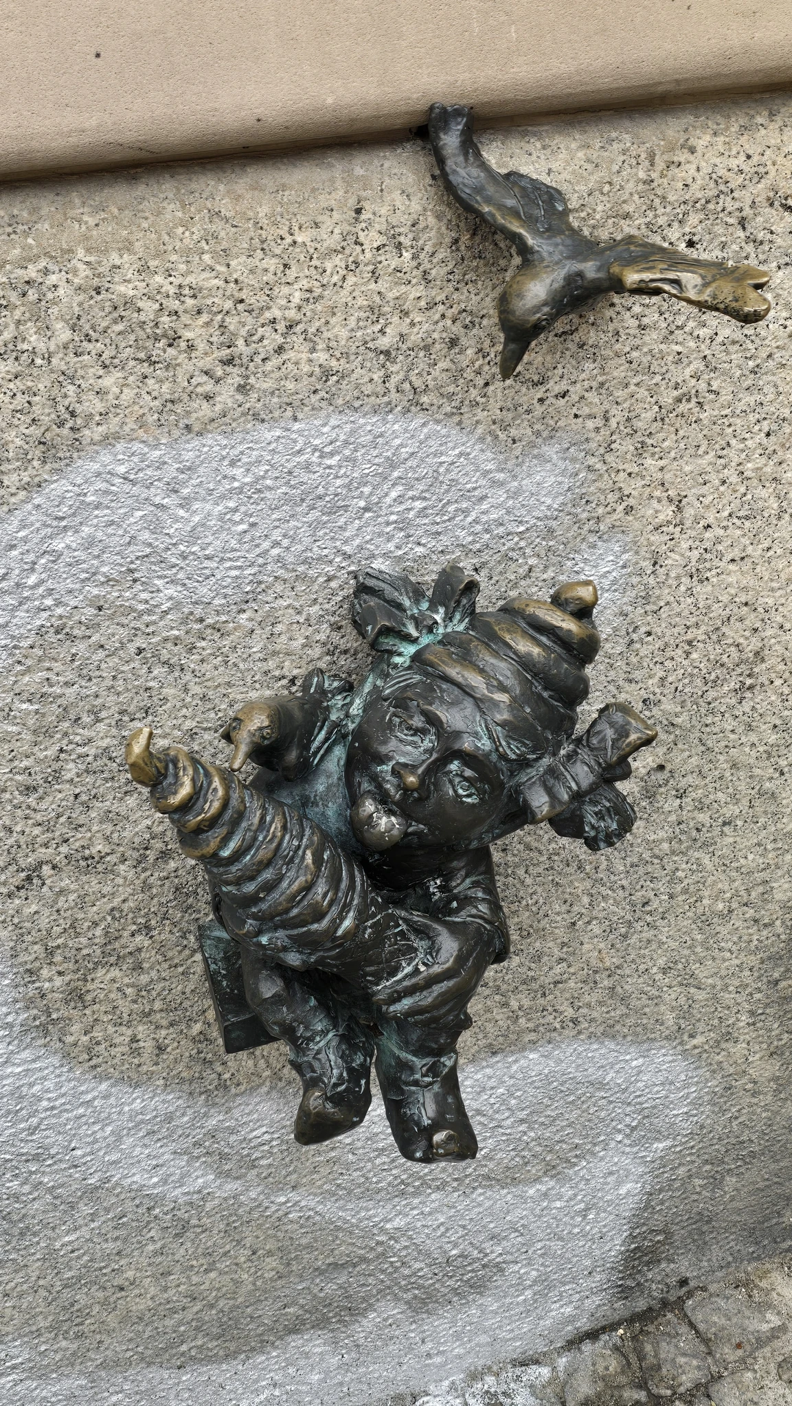 Wrocławis vist ei saagi käia ilma Wrocławi päkapikkudega kohtumata. Päkapikud on linna üks olulisi turismiatraktsioone ja armas hullus. Need on väikesed 20-30 cm kõrgused päkapikukujukesed. Neist igaüks on omanäoline, igaüks kannab mingit mõtet ja igaühel on nimi ka. Ja oi, kui kiiresti nad paljunevad! Kui me esimest korda Wrocławis käisime, nägime ka päkapikke, aga siiski üksikuid. Seekordsel käigul nägime me ka algul mõnda üksikut, aga no kui sa juba näed, siis sa jäädki nägema. Sa näed päkapikke isegi seal, kus neid päriselt ei ole.