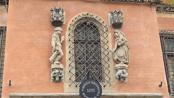 Raekojaplatsil on juba küllaga uudistamist. See on sama moodi nagu nii mõnedki teised Poola keskaegsete linnade väljakud mitte klassikaline avatud plats, vaid plats ümber majade. Loomulikult on see üks Euroopa suurimaid vanalinna väljakuid. Ma ei tea mitu korda ma seda erinevate raekojaplatside kohta juba kirjutanud olen. Platsile viib 10 tänavat ja tegelikult on seal platsi keskel oleva hoone kompleksi sees ka tänavad, kui oskad otsida, kust sinna sisse minna. Üks osa sellest platsi keskel olevast hoonete kompleksist on vana raekoda, teine on uus raekoda ja siis on veel maju, kus näiteks elatakse. Raekoja küljel asub sissepääs ühte Euroopa vanimasse tegutsevasse joogiasutusse - Piwnica Świdnickasse. Kõrtsi on esmakordselt mainitud 1303. aastal. Kõrts tegutseb praegugi ja on endiselt väga populaarne.