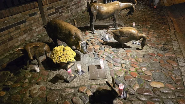 Isegi, kui raekojaplatsist ja selle hoonetest peale II maailmasõda suurt midagi järgi polnud, jäid mõned hooned siiski püsti ja kas täitsa või üsna kahjustamata. Kaks kõrvutiolevat keskaegset elumaja, mis jäid täiesti kahjustamata, on nunnud, justkui täiesti miniatuursed ja kokku pressitud kivimajad. Nad omavahel ühendatud kivist kaarega, mille alt läbi kõndides jõuad kiriku õuele. See on tõesti hästi nunnu vaatepilt ja neid kahte püsti jäänud maja hakati kutsuma Hansuks ja Greteks. Nii on nad ka praegu tuntud.