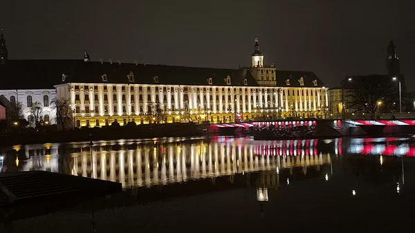 Väga vaatamist väärt paik on ka Wrocławi ülikool. Ülikooli peahoone fassaad võtab sõnatuks nii jõe kui ka tänavapoolt vaadatuna. Wrocławi ülikooli hoone asub kohas, kus kunagi asus Sileesia vürstide loss. 1702. aastal kiitis keiser Leopold I heaks jesuiitide ülikooli loomise idee ning tema ja ta järeltulijad rahastasid hoone ehitamist. Projekt nägi ette, et ülikool saab olema kolme torniga 200 meetri pikkune hoone. Lõpuks ehitati ainult üks torn, plaanituist madalaim, matemaatika torn, ülejäänud jäid rahaliste probleemide tõttu ehitamata. Lisaks on peahoone "ainult" 171 meetrit pikk. Imetlesime seda maja juba esimesel õhtul ja käisime koertegagi hommikusi ringe ikka sealt ülikooli juurest läbi. Ülikoolimaja sees on ka üks erakordselt ilus saal, mida vaatamas käiakse. Meie kahjuks ei käinud, kuna oli pühade aeg ja lisaks pidi ka ülikooli sünnipäeva aeg olema ning külastamine seega raskendatud. Ülikooli peahoones on tänapäeval administratiivosa ehk ükski teaduskond otseselt seal ei asu ega õpi. Aga eriti uhke rüü sai ülikool nädalavahetusel enne Poola iseseisvuspäeva, mil üikoolisild pimeduses valgepunasesse mähkus. See kõik peegeldus jõevees ja ohhh, no vaadake ise fotosid!